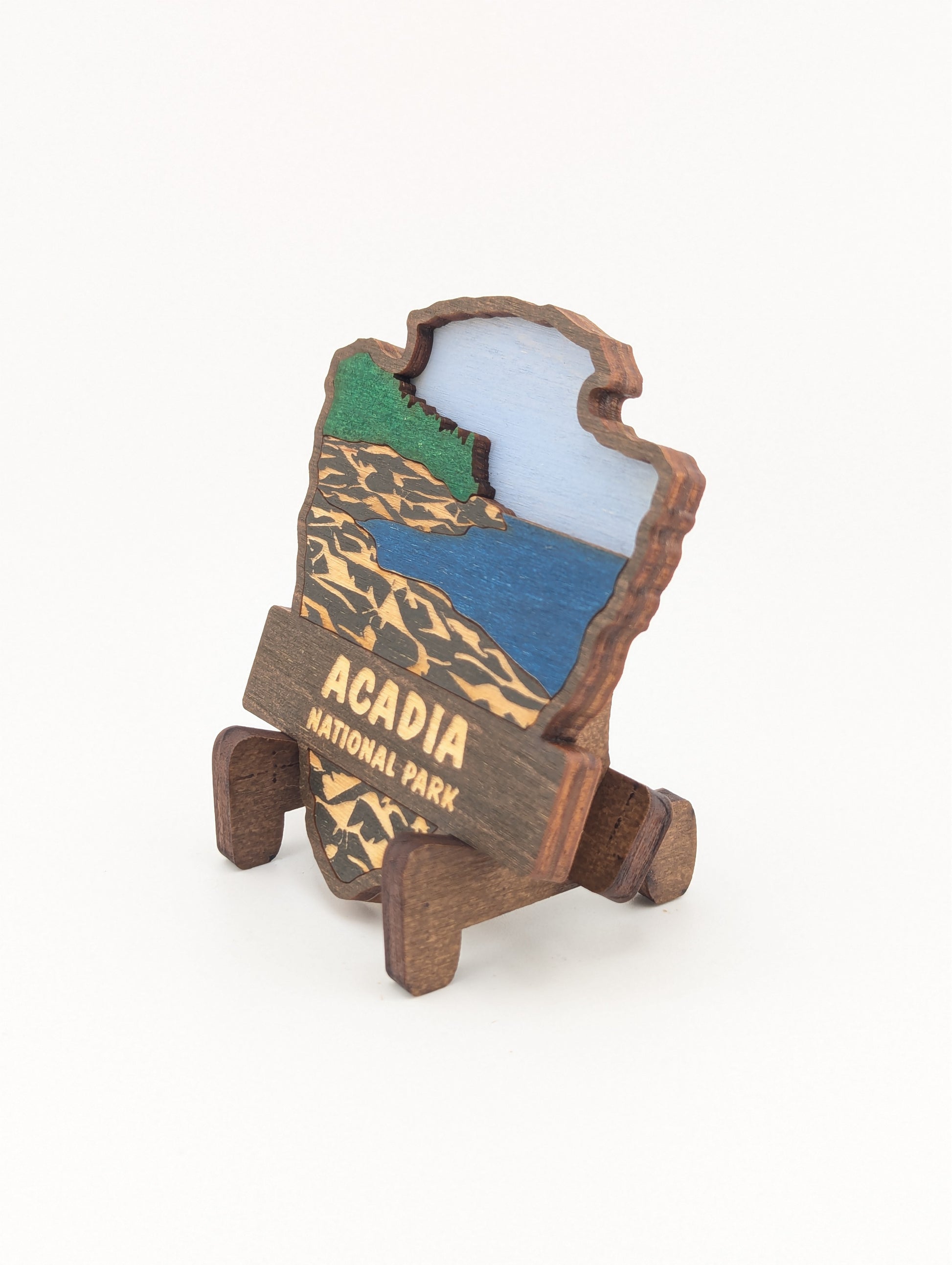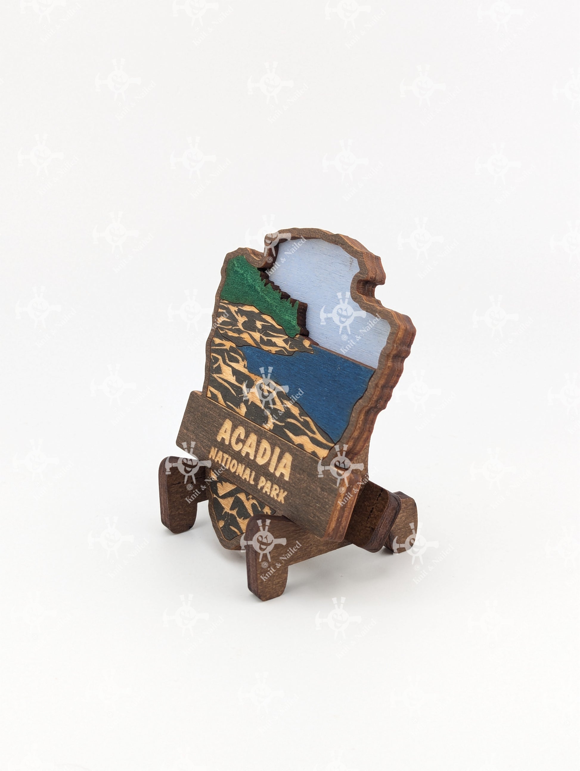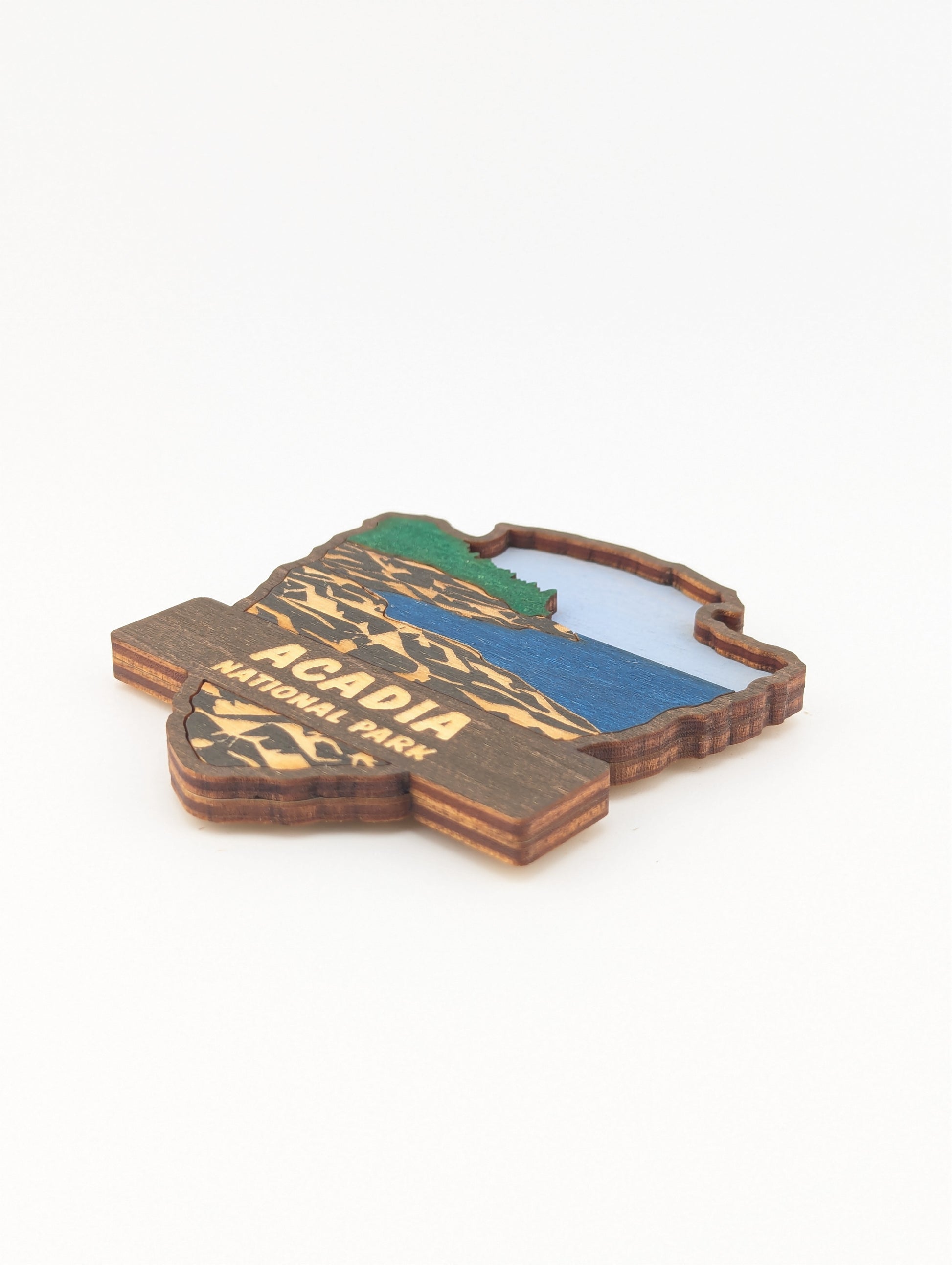 Celebrate your love for the great outdoors with this handcrafted wooden magnet or ornament. Inspired by the classic National Park Arrowhead, its layered design highlights the beauty of nature and brings a touch of the wilderness into your home. Whether displayed on your fridge or hung as décor, it makes a perfect keepsake, gift, or addition to your National Park collection. Each piece is laser-cut and hand-finished, making each item a one-of-a-kind piece of art. Created in our home. From our family to yours. Dimensions: 3.5" tall x 3" wide.