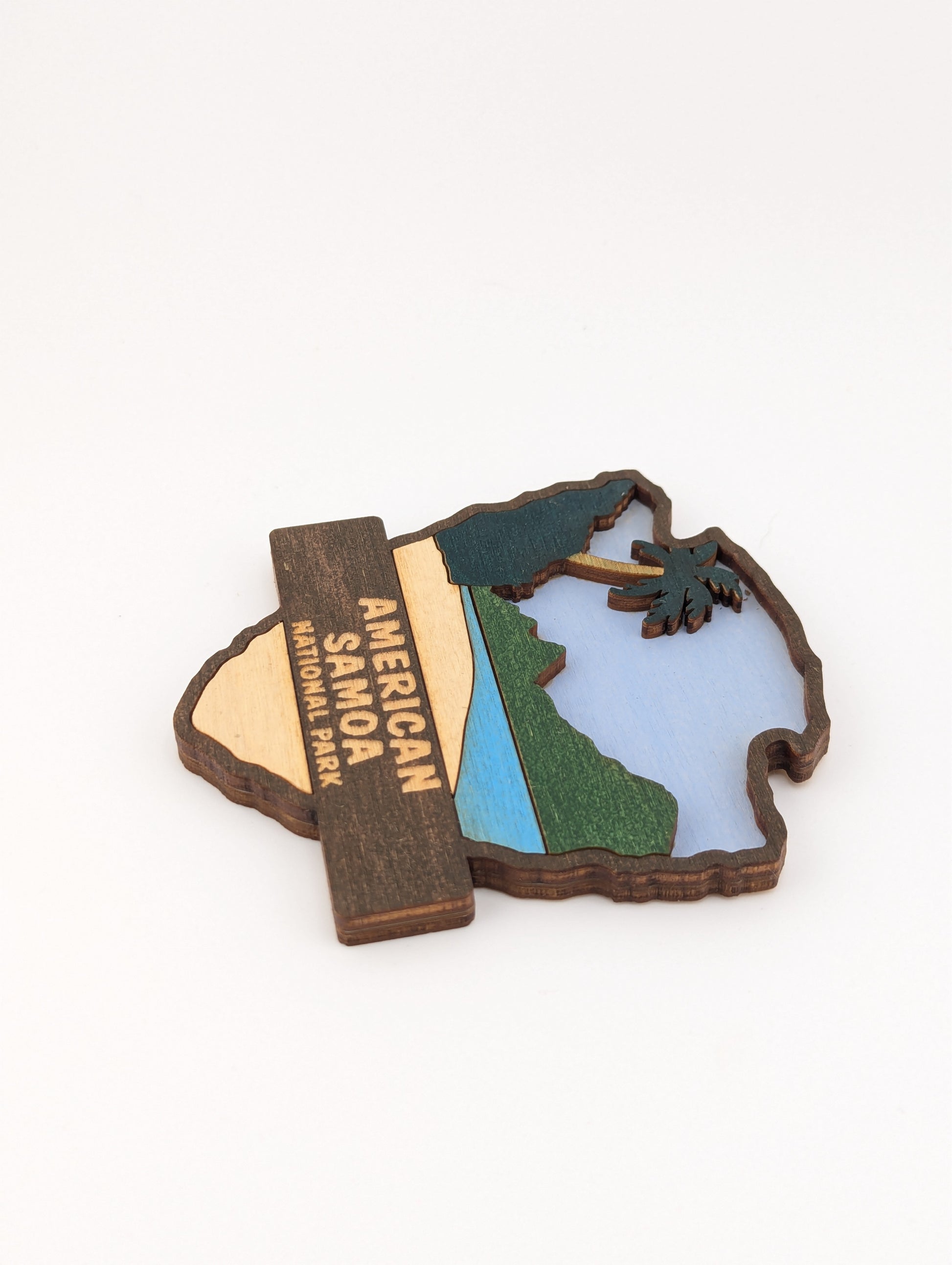 Celebrate your love for the great outdoors with this handcrafted wooden magnet or ornament. Inspired by the classic National Park Arrowhead, its layered design highlights the beauty of nature and brings a touch of the wilderness into your home. Whether displayed on your fridge or hung as décor, it makes a perfect keepsake, gift, or addition to your National Park collection. Each piece is laser-cut and hand-finished, making each item a one-of-a-kind piece of art. Created in our home. From our family to yours. Dimensions: 3.5" tall x 3" wide.