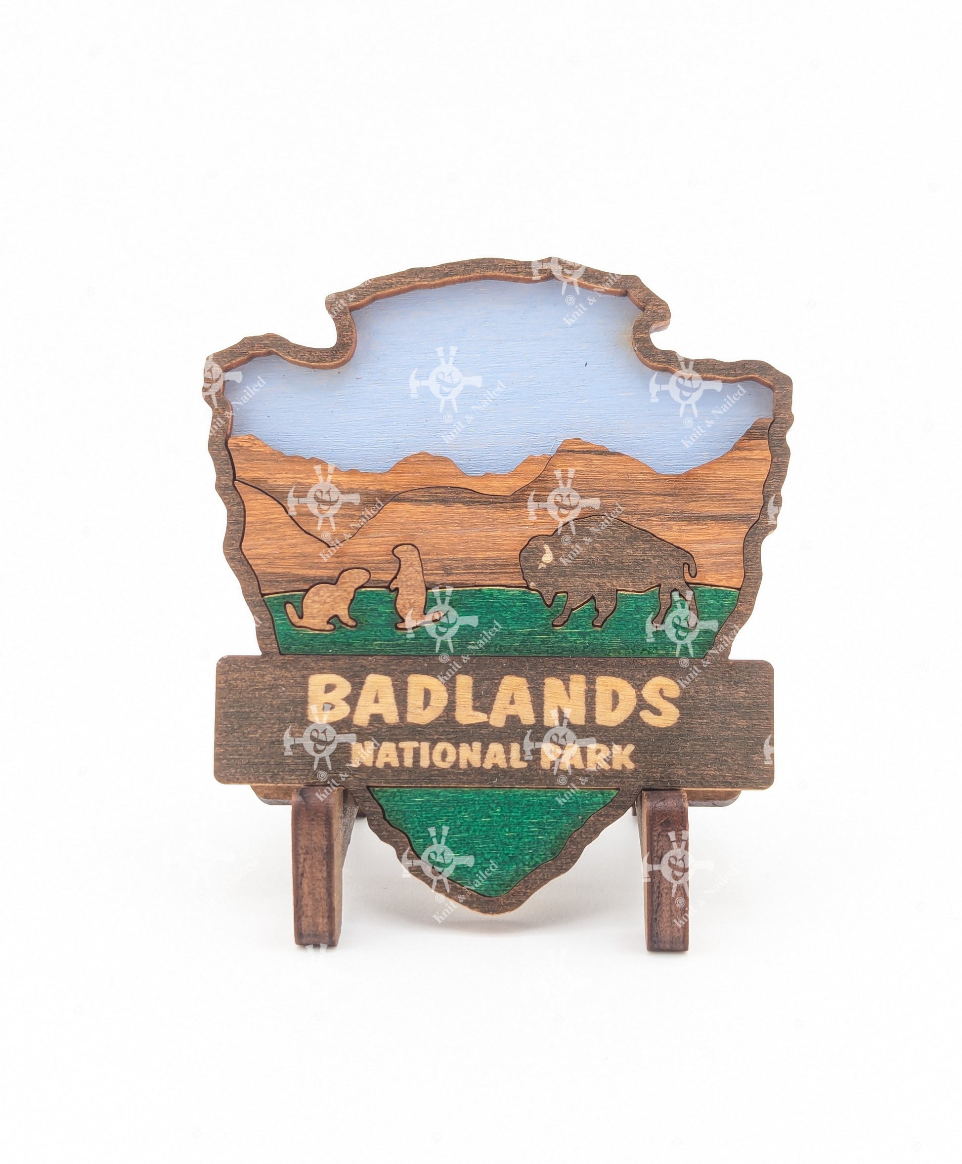 Celebrate your love for the great outdoors with this handcrafted wooden magnet or ornament. Inspired by the classic National Park Arrowhead, its layered design highlights the beauty of nature and brings a touch of the wilderness into your home. Whether displayed on your fridge or hung as décor, it makes a perfect keepsake, gift, or addition to your National Park collection. Each piece is laser-cut and hand-finished, making each item a one-of-a-kind piece of art. Created in our home. From our family to yours. Dimensions: 3.5" tall x 3" wide.