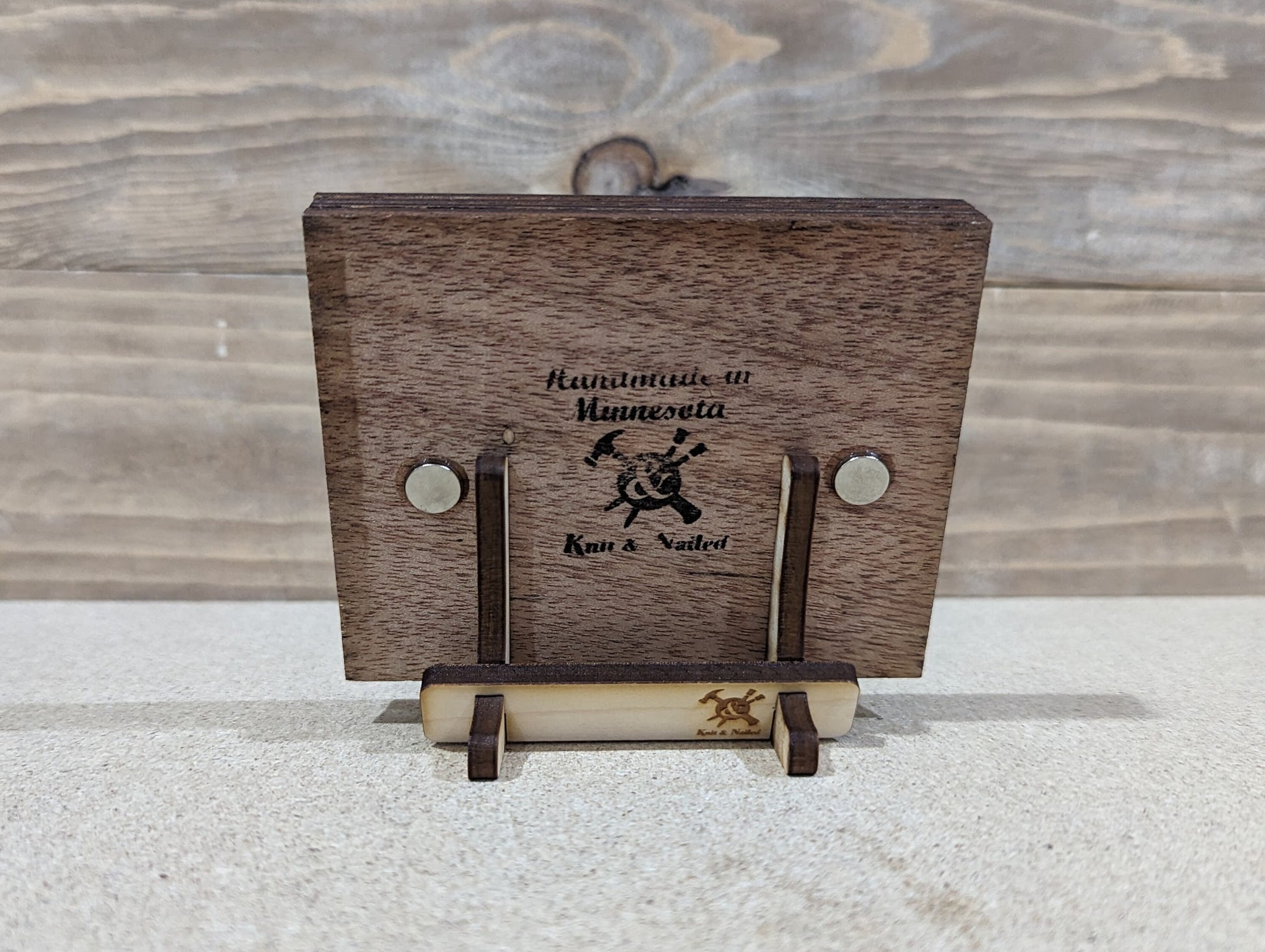 This piece has a picture hanger on the back so a nail will hold it up on the wall. Little plastic stops are along the bottom of the back to hold the piece flush with the wall. We have quite a few different varieties as well as magnet sizes! Stamped with our K&N logo on the back. Please visit the shop or send a message with any questions.