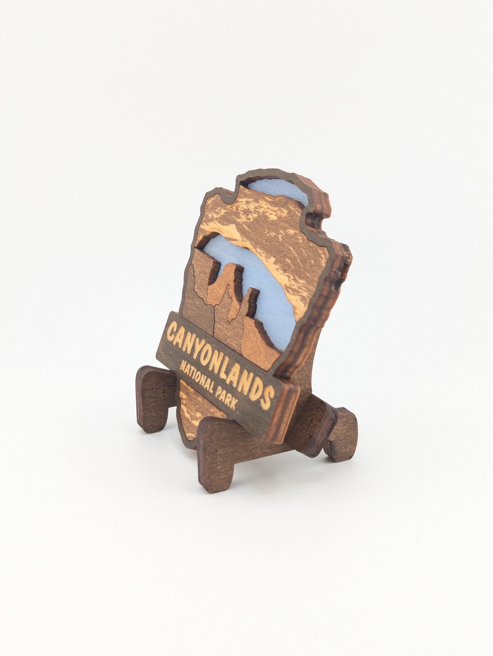 Celebrate your love for the great outdoors with this handcrafted wooden magnet or ornament. Inspired by the classic National Park Arrowhead, its layered design highlights the beauty of nature and brings a touch of the wilderness into your home. Whether displayed on your fridge or hung as décor, it makes a perfect keepsake, gift, or addition to your National Park collection. Each piece is laser-cut and hand-finished, making each item a one-of-a-kind piece of art. Created in our home. From our family to yours. Dimensions: 3.5" tall x 3" wide.