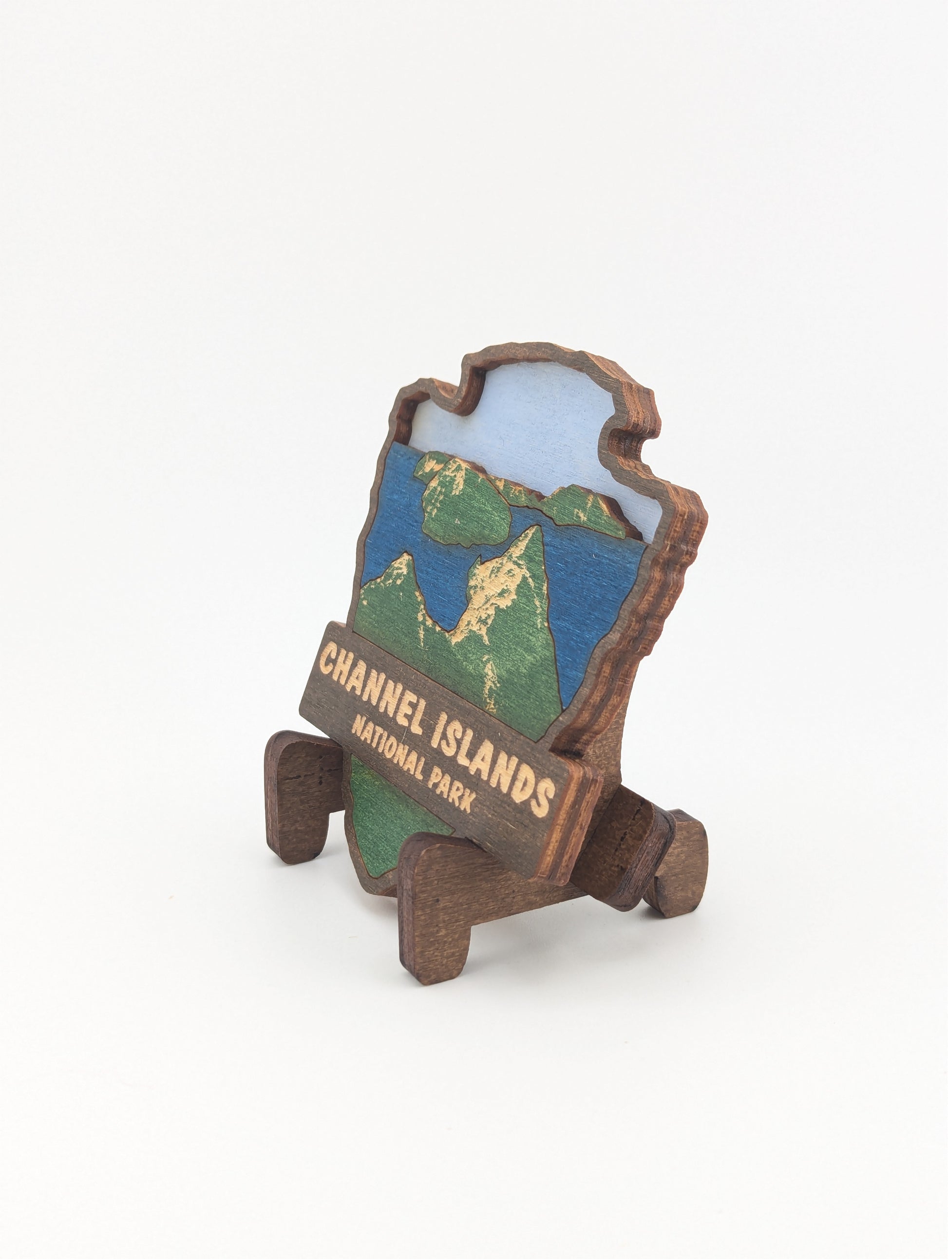 Celebrate your love for the great outdoors with this handcrafted wooden magnet or ornament. Inspired by the classic National Park Arrowhead, its layered design highlights the beauty of nature and brings a touch of the wilderness into your home. Whether displayed on your fridge or hung as décor, it makes a perfect keepsake, gift, or addition to your National Park collection. Each piece is laser-cut and hand-finished, making each item a one-of-a-kind piece of art. Created in our home. From our family to yours. Dimensions: 3.5" tall x 3" wide.