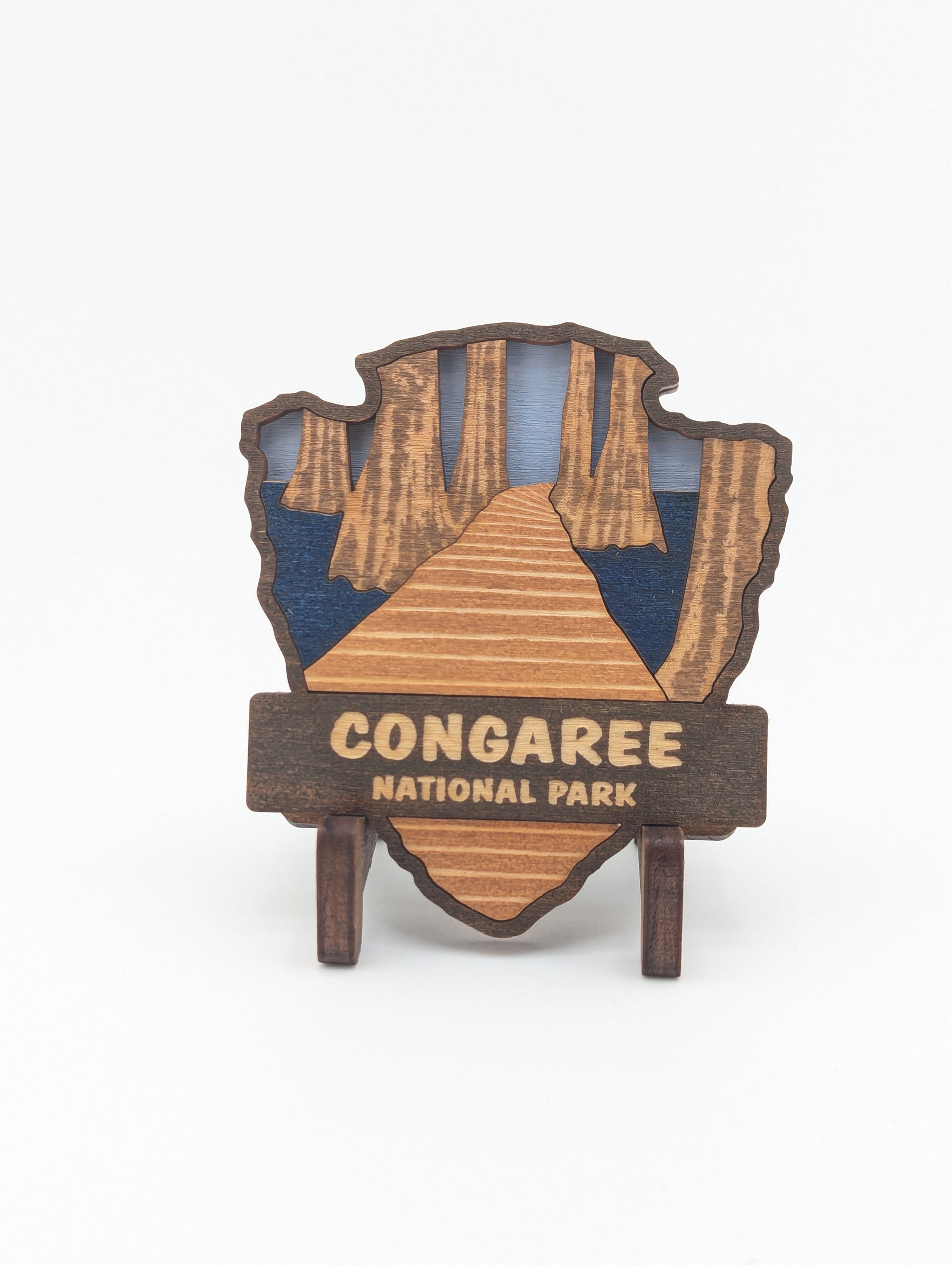 Celebrate your love for the great outdoors with this handcrafted wooden magnet or ornament. Inspired by the classic National Park Arrowhead, its layered design highlights the beauty of nature and brings a touch of the wilderness into your home. Whether displayed on your fridge or hung as décor, it makes a perfect keepsake, gift, or addition to your National Park collection. Each piece is laser-cut and hand-finished, making each item a one-of-a-kind piece of art. Created in our home. From our family to yours. Dimensions: 3.5" tall x 3" wide.