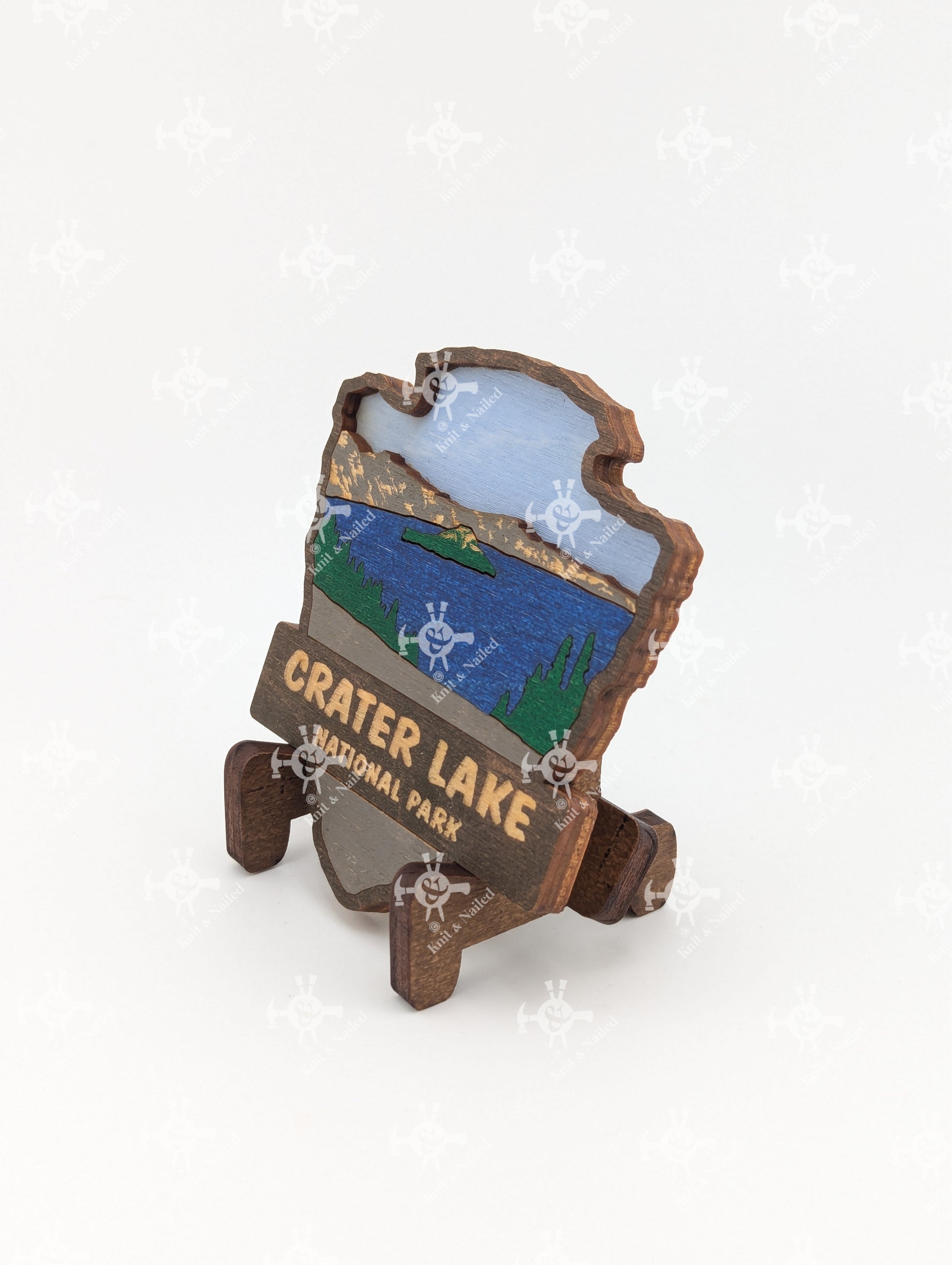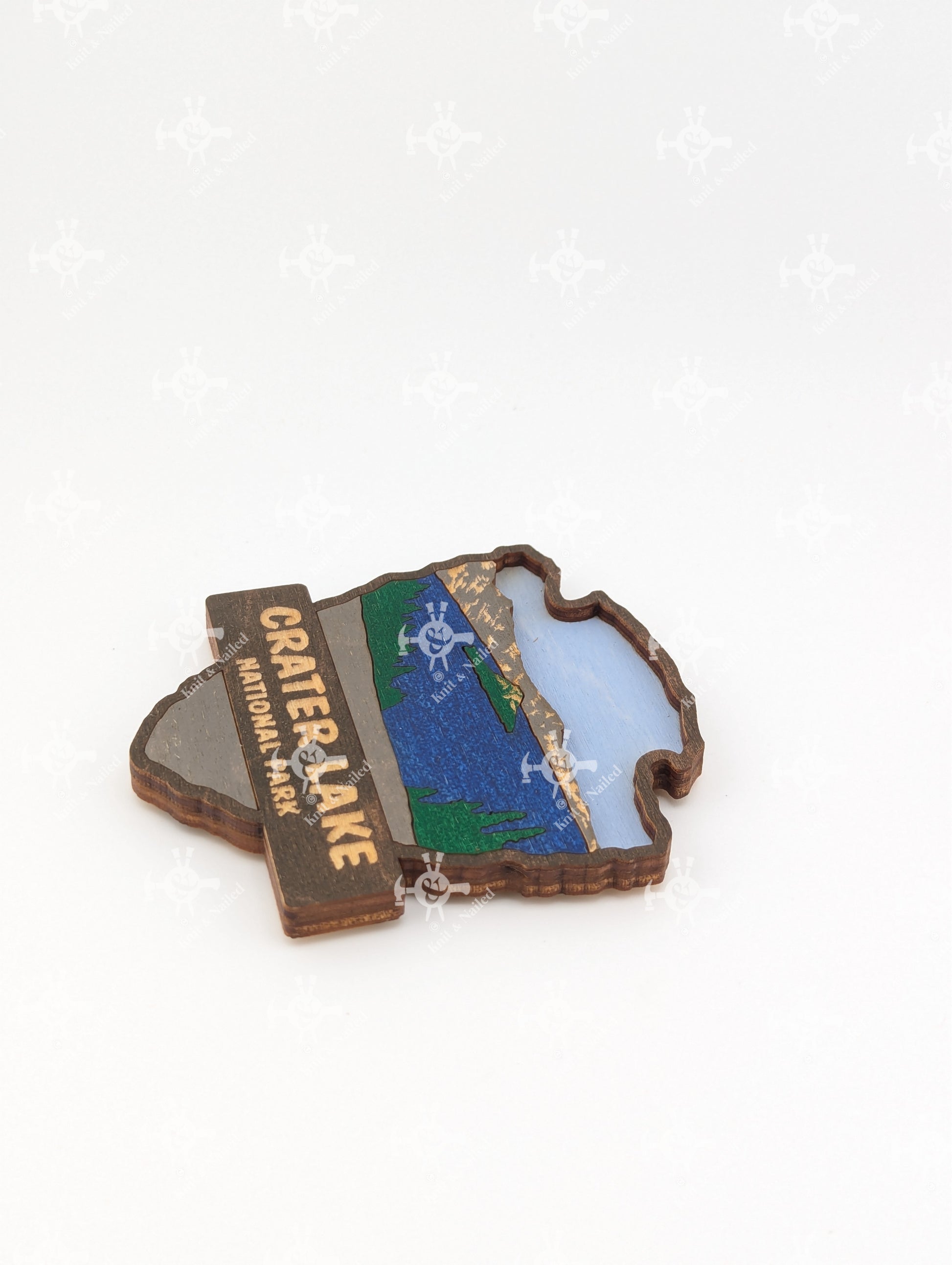 Celebrate your love for the great outdoors with this handcrafted wooden magnet or ornament. Inspired by the classic National Park Arrowhead, its layered design highlights the beauty of nature and brings a touch of the wilderness into your home. Whether displayed on your fridge or hung as décor, it makes a perfect keepsake, gift, or addition to your National Park collection. Each piece is laser-cut and hand-finished, making each item a one-of-a-kind piece of art. Created in our home. From our family to yours. Dimensions: 3.5" tall x 3" wide.