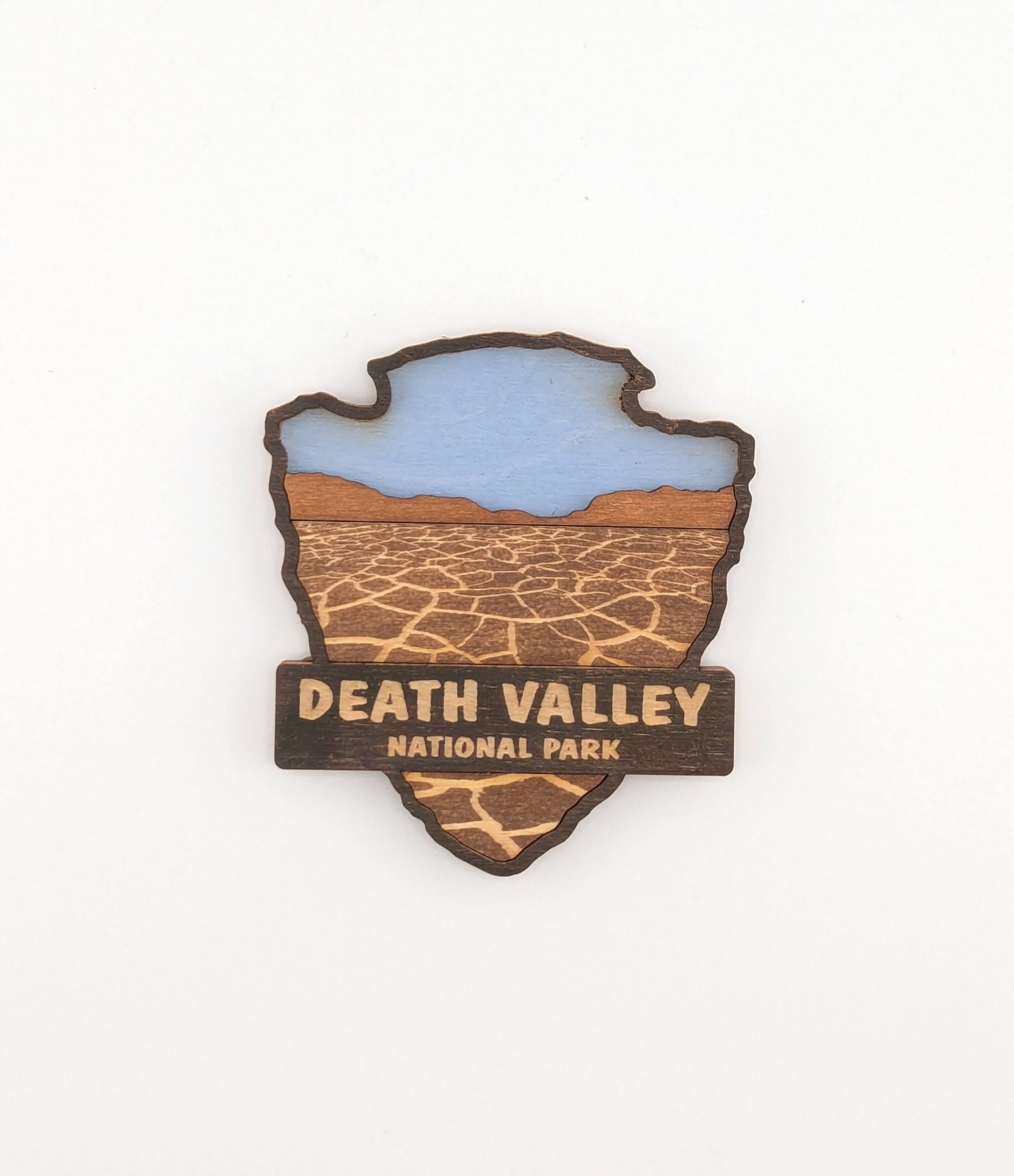 Celebrate your love for the great outdoors with this handcrafted wooden magnet or ornament. Inspired by the classic National Park Arrowhead, its layered design highlights the beauty of nature and brings a touch of the wilderness into your home. Whether displayed on your fridge or hung as décor, it makes a perfect keepsake, gift, or addition to your National Park collection. Each piece is laser-cut and hand-finished, making each item a one-of-a-kind piece of art. Created in our home. From our family to yours. Dimensions: 3.5" tall x 3" wide.