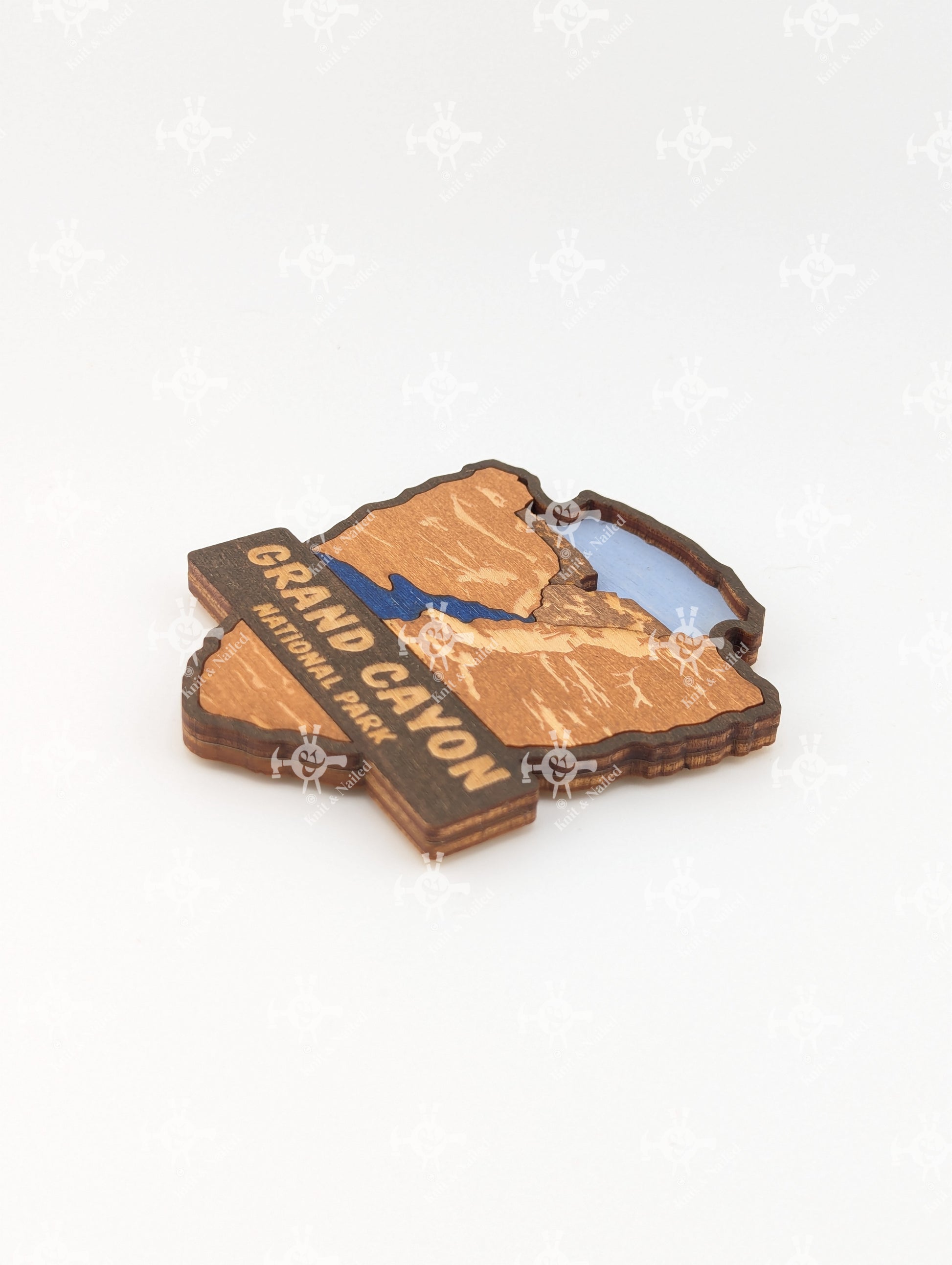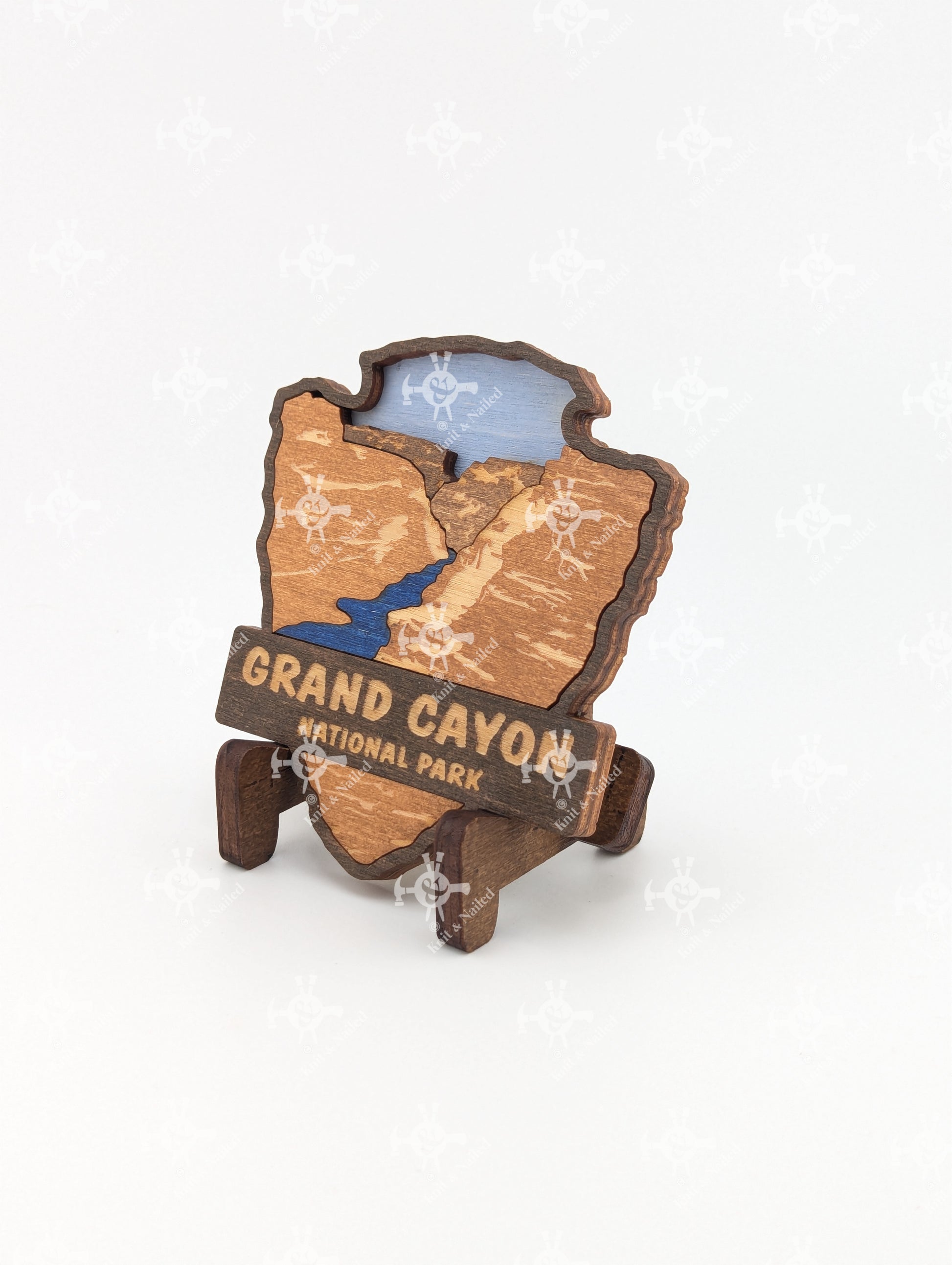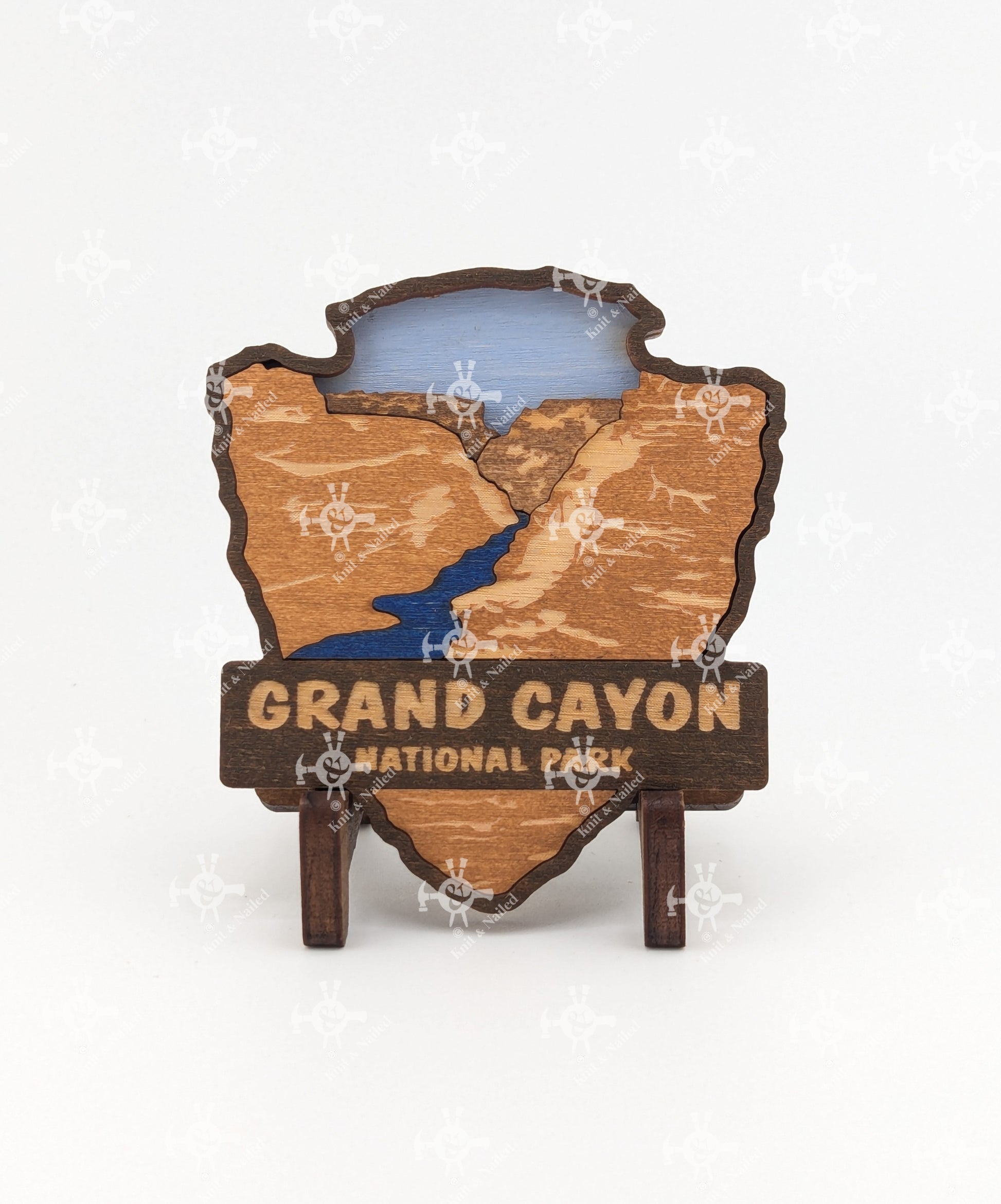 Celebrate your love for the great outdoors with this handcrafted wooden magnet or ornament. Inspired by the classic National Park Arrowhead, its layered design highlights the beauty of nature and brings a touch of the wilderness into your home. Whether displayed on your fridge or hung as décor, it makes a perfect keepsake, gift, or addition to your National Park collection. Each piece is laser-cut and hand-finished, making each item a one-of-a-kind piece of art. Created in our home. From our family to yours. Dimensions: 3.5" tall x 3" wide.