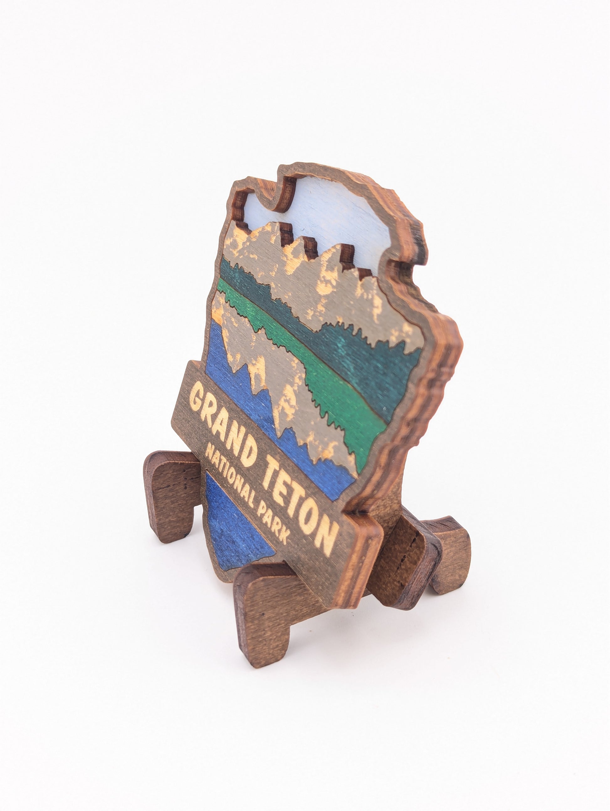 Celebrate your love for the great outdoors with this handcrafted wooden magnet or ornament. Inspired by the classic National Park Arrowhead, its layered design highlights the beauty of nature and brings a touch of the wilderness into your home. Whether displayed on your fridge or hung as décor, it makes a perfect keepsake, gift, or addition to your National Park collection. Each piece is laser-cut and hand-finished, making each item a one-of-a-kind piece of art. Created in our home. From our family to yours. Dimensions: 3.5" tall x 3" wide.