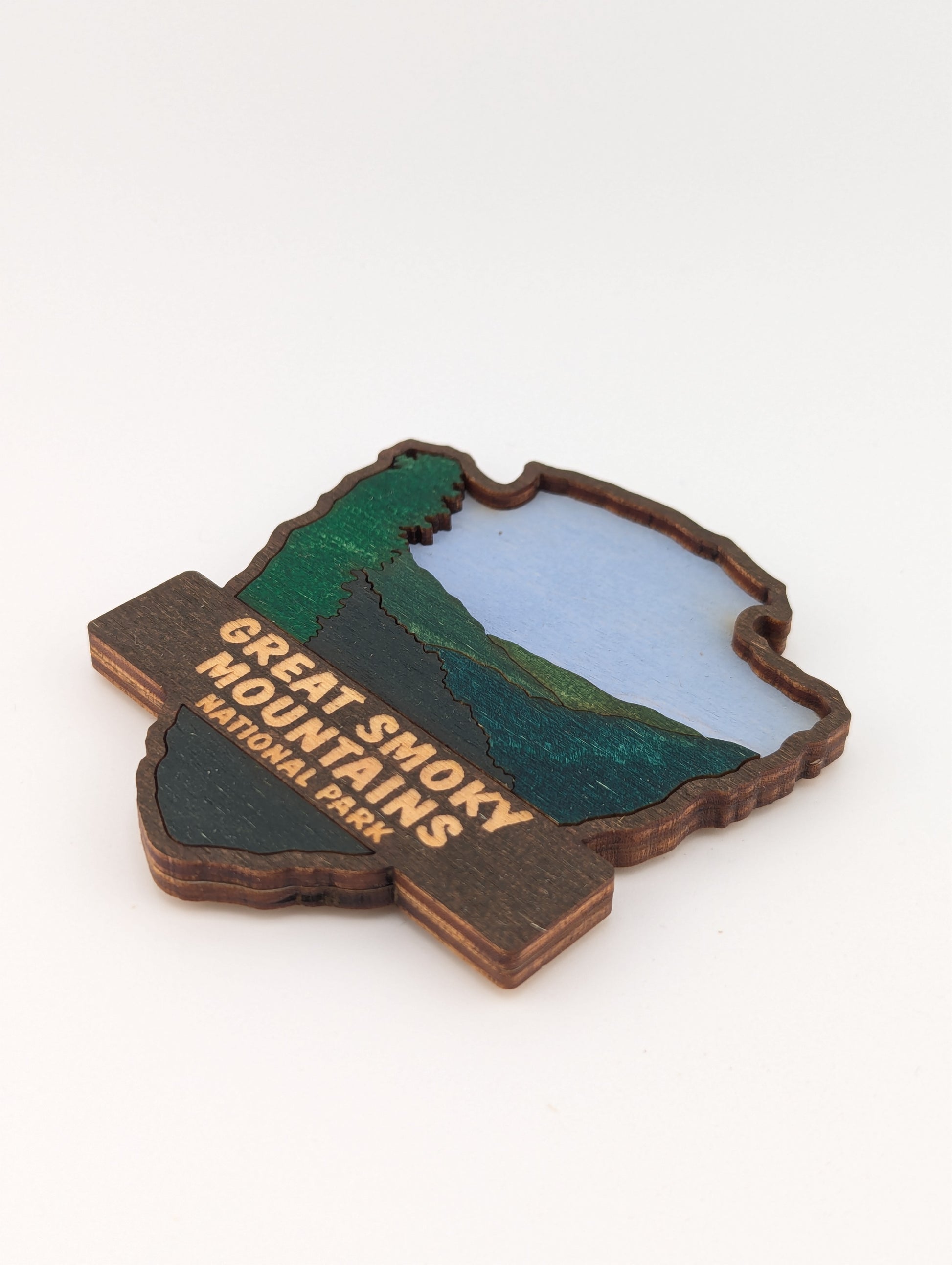 Celebrate your love for the great outdoors with this handcrafted wooden magnet or ornament. Inspired by the classic National Park Arrowhead, its layered design highlights the beauty of nature and brings a touch of the wilderness into your home. Whether displayed on your fridge or hung as décor, it makes a perfect keepsake, gift, or addition to your National Park collection. Each piece is laser-cut and hand-finished, making each item a one-of-a-kind piece of art. Created in our home. From our family to yours. Dimensions: 3.5" tall x 3" wide.