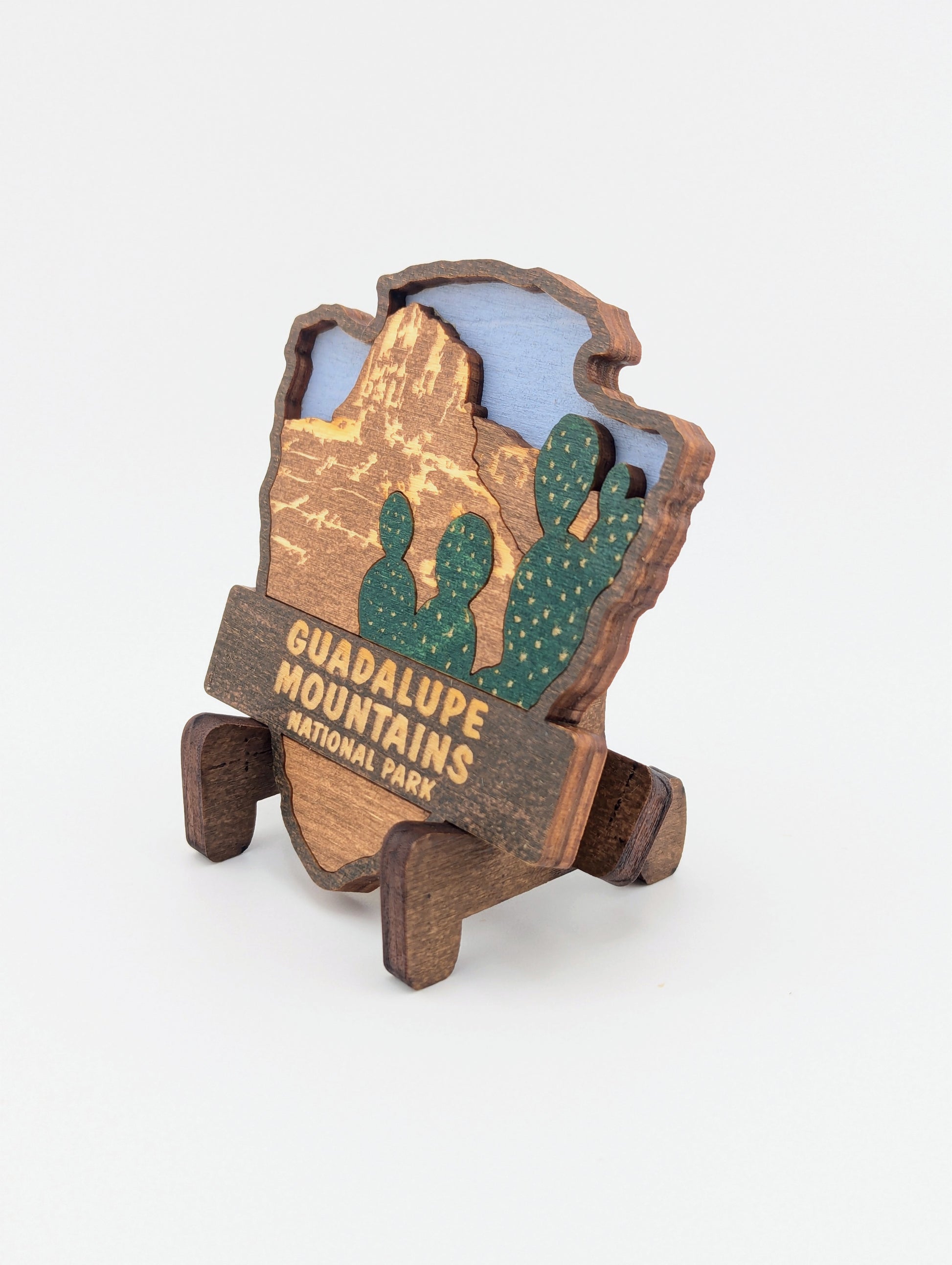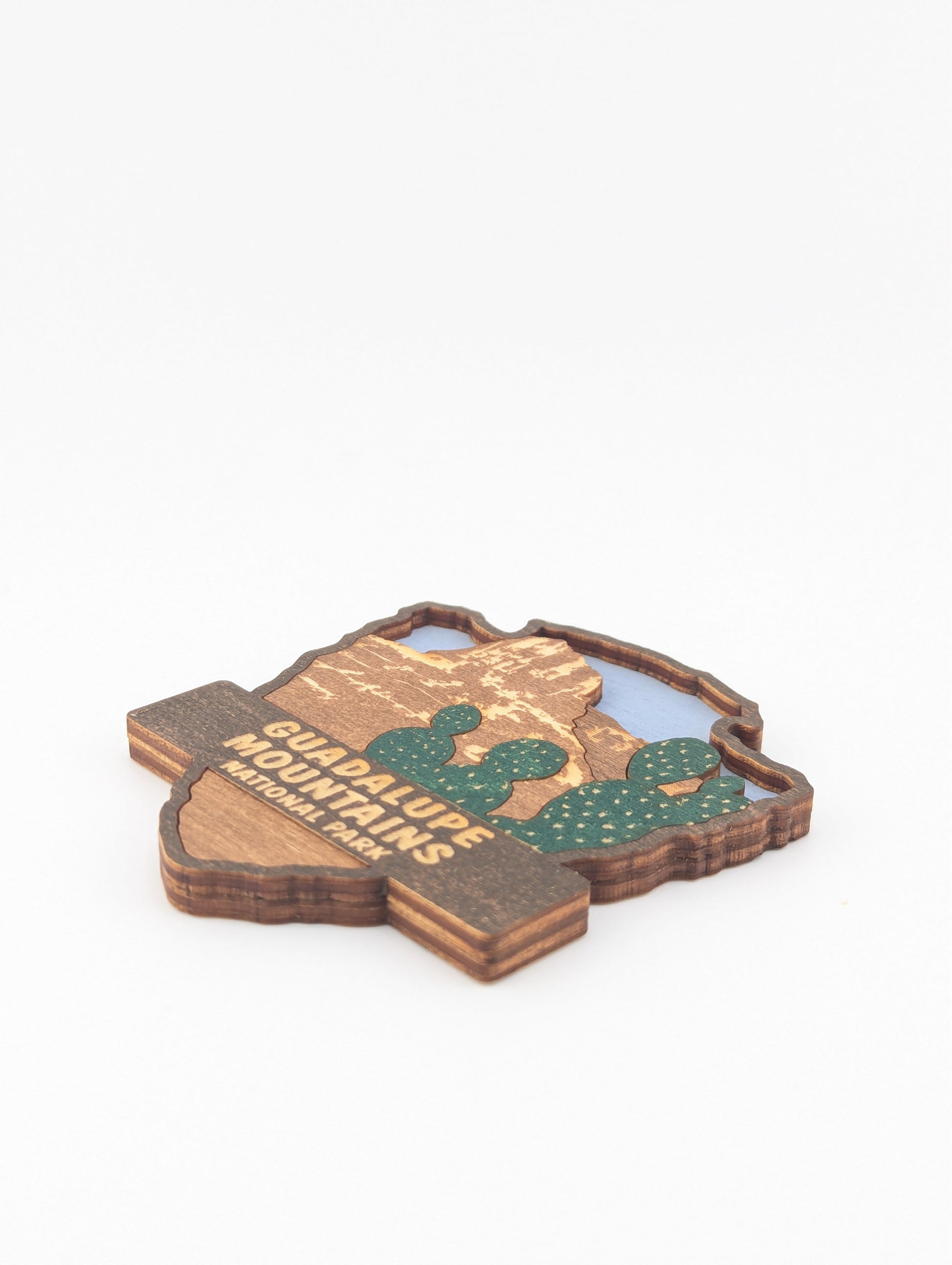 Celebrate your love for the great outdoors with this handcrafted wooden magnet or ornament. Inspired by the classic National Park Arrowhead, its layered design highlights the beauty of nature and brings a touch of the wilderness into your home. Whether displayed on your fridge or hung as décor, it makes a perfect keepsake, gift, or addition to your National Park collection. Each piece is laser-cut and hand-finished, making each item a one-of-a-kind piece of art. Created in our home. From our family to yours. Dimensions: 3.5" tall x 3" wide.