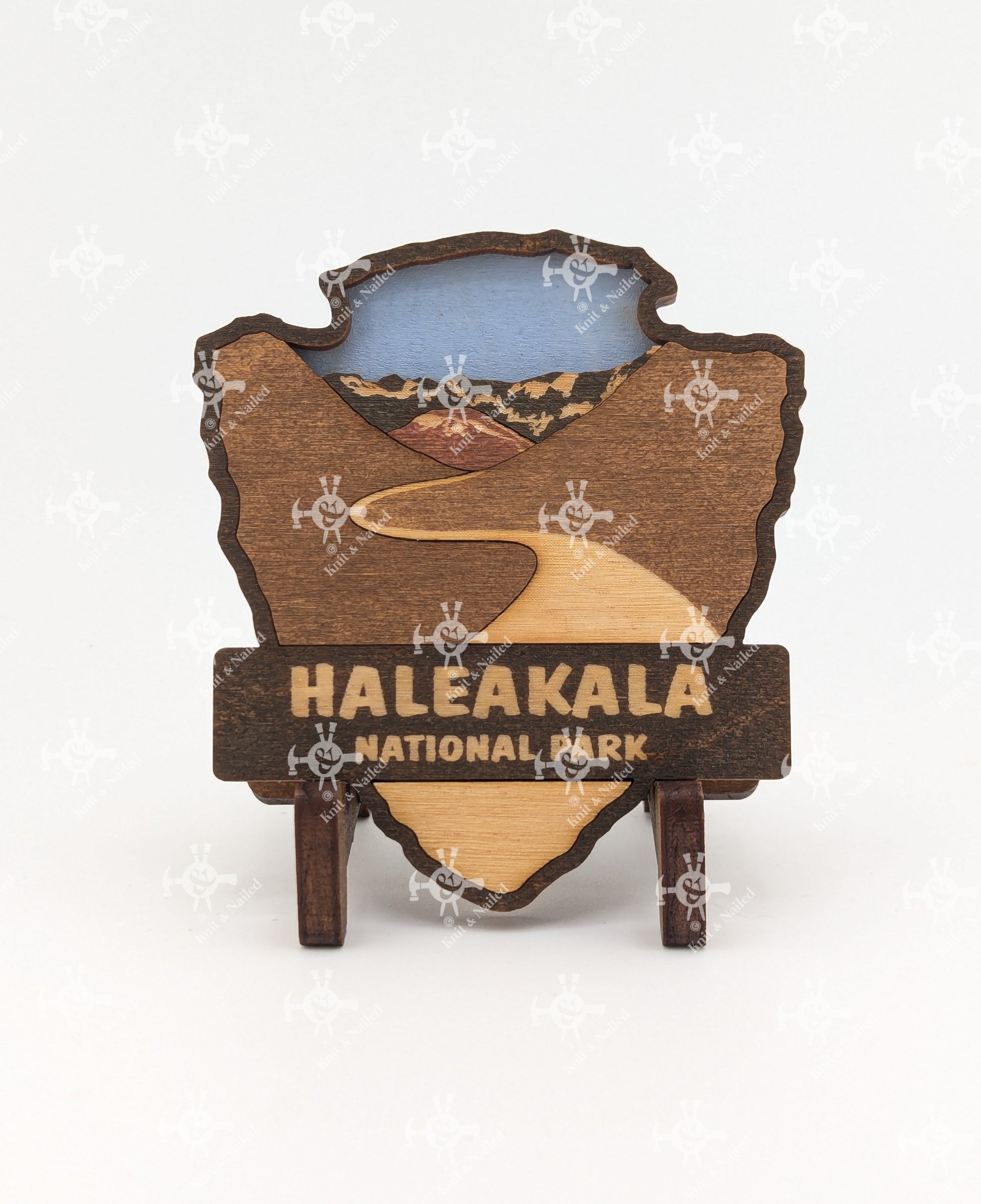 Celebrate your love for the great outdoors with this handcrafted wooden magnet or ornament. Inspired by the classic National Park Arrowhead, its layered design highlights the beauty of nature and brings a touch of the wilderness into your home. Whether displayed on your fridge or hung as décor, it makes a perfect keepsake, gift, or addition to your National Park collection. Each piece is laser-cut and hand-finished, making each item a one-of-a-kind piece of art. Created in our home. From our family to yours. Dimensions: 3.5" tall x 3" wide.