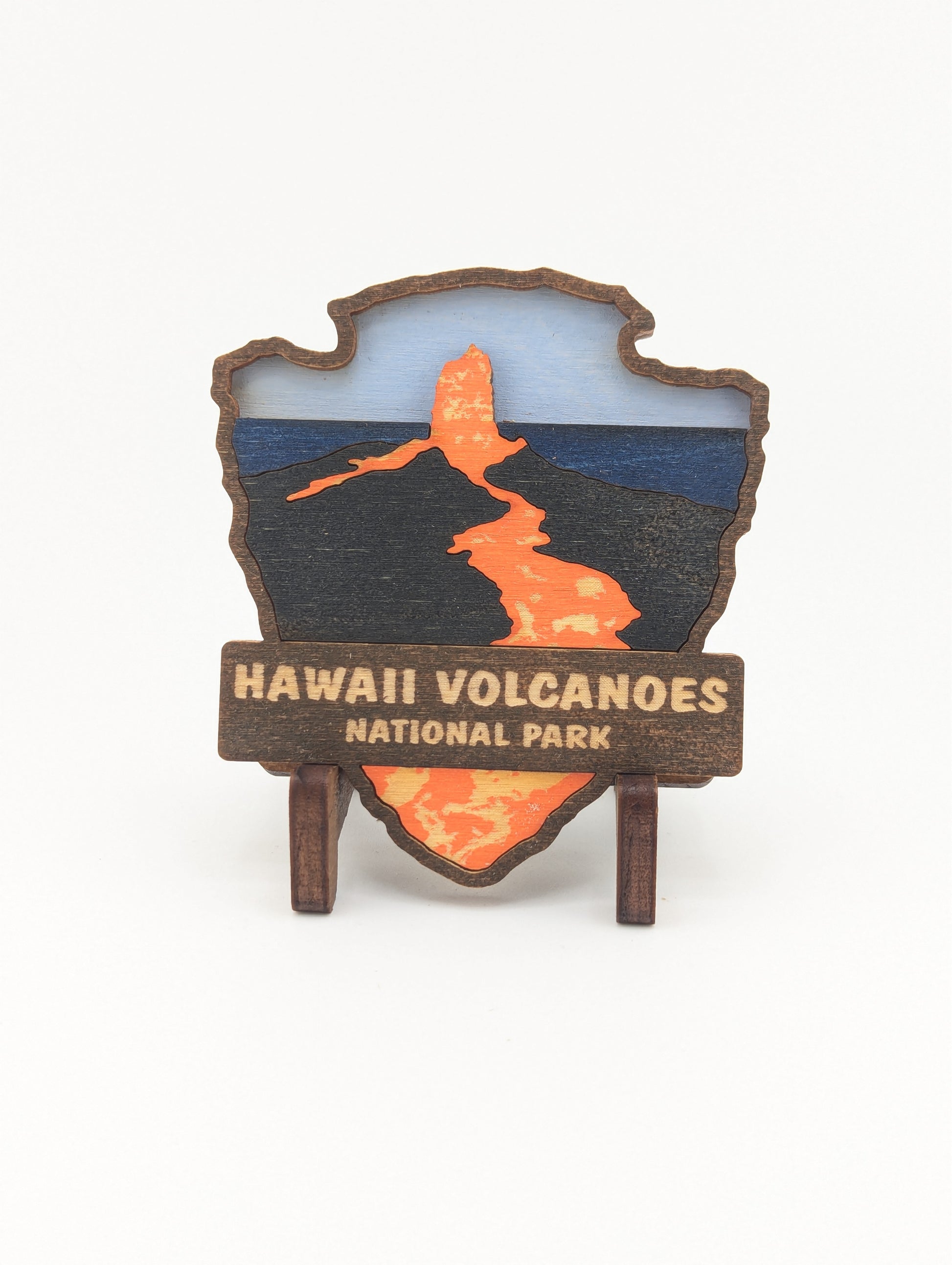 Celebrate your love for the great outdoors with this handcrafted wooden magnet or ornament. Inspired by the classic National Park Arrowhead, its layered design highlights the beauty of nature and brings a touch of the wilderness into your home. Whether displayed on your fridge or hung as décor, it makes a perfect keepsake, gift, or addition to your National Park collection. Each piece is laser-cut and hand-finished, making each item a one-of-a-kind piece of art. Created in our home. From our family to yours. Dimensions: 3.5" tall x 3" wide.