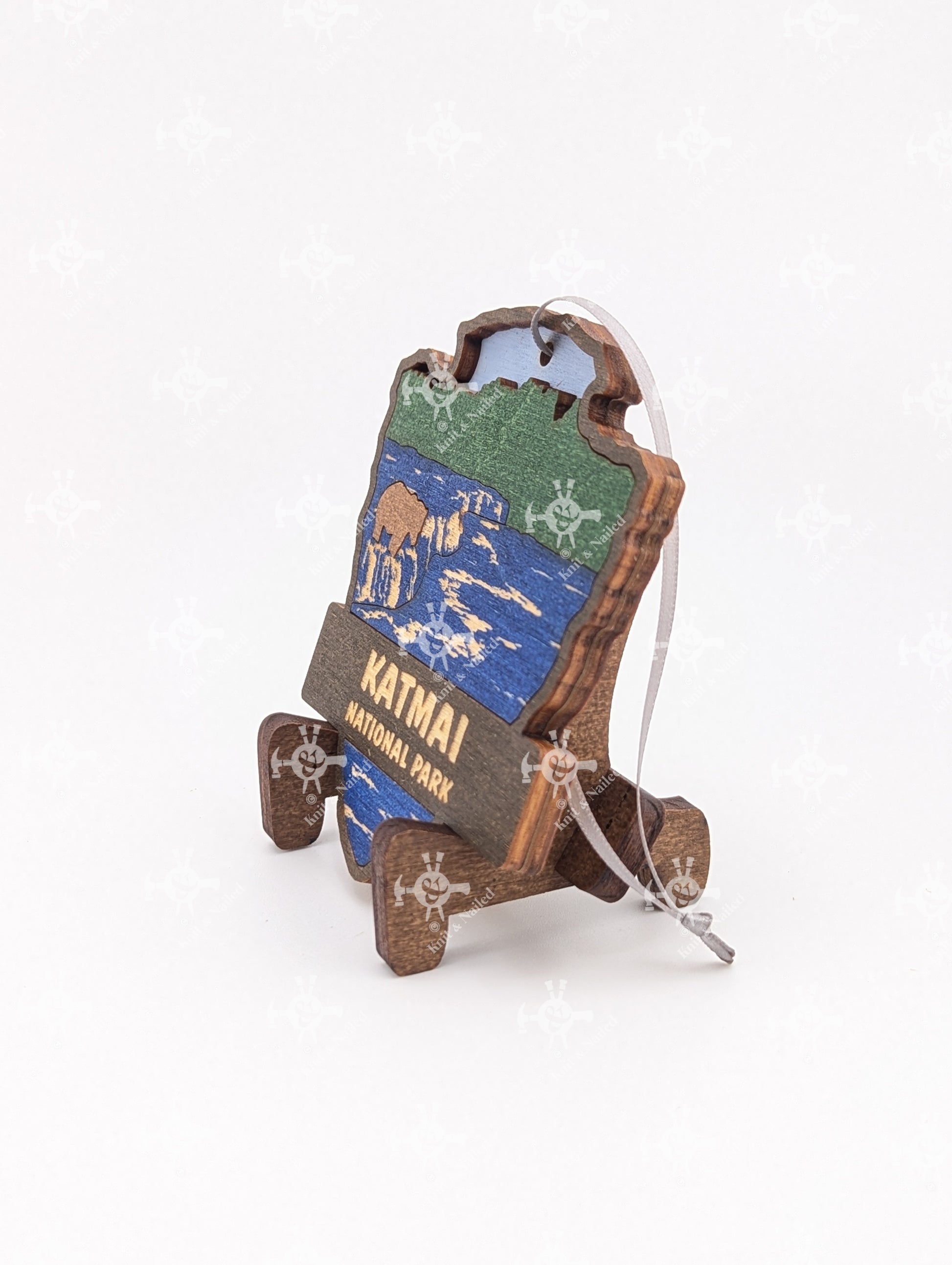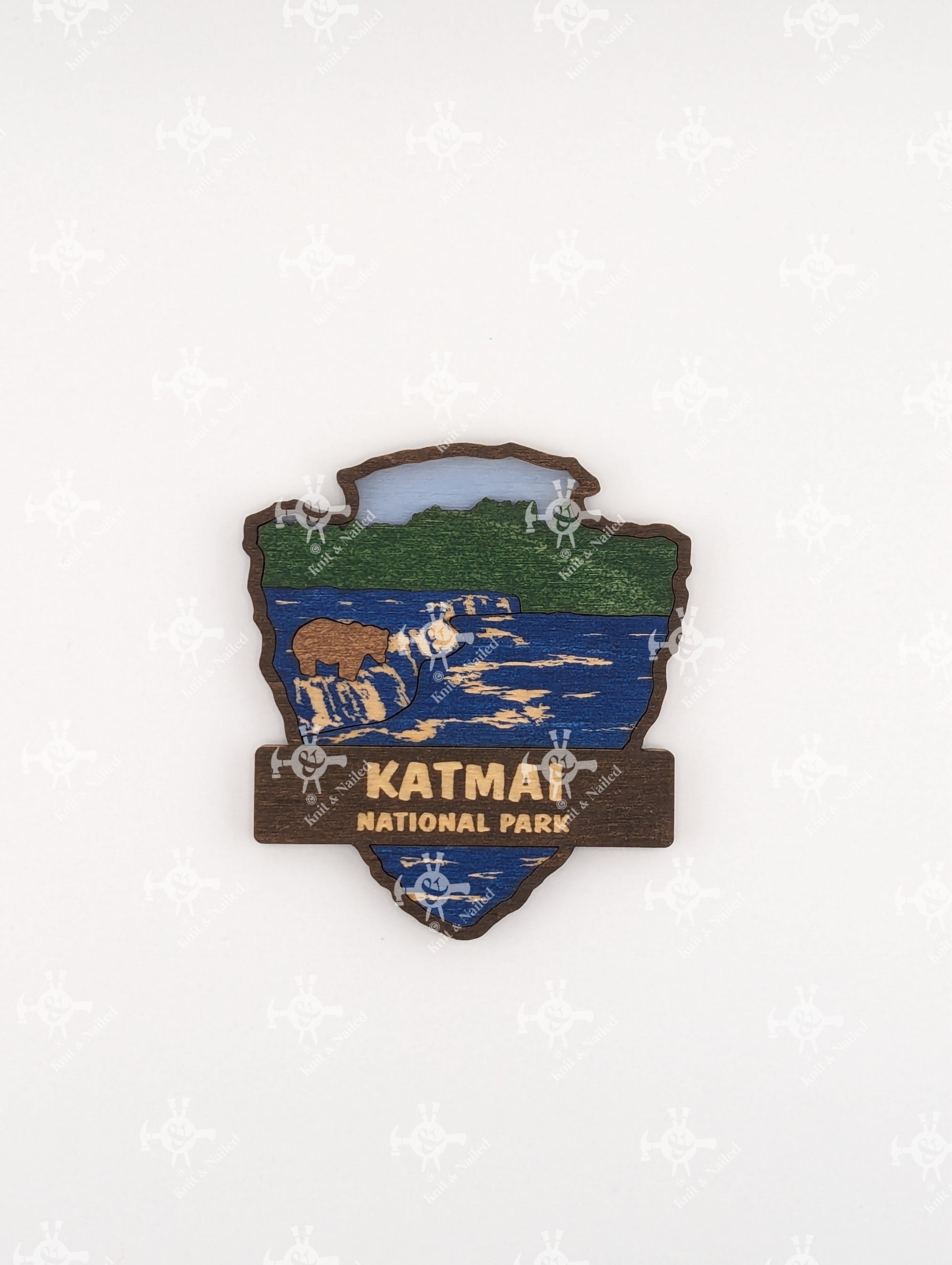 Celebrate your love for the great outdoors with this handcrafted wooden magnet or ornament. Inspired by the classic National Park Arrowhead, its layered design highlights the beauty of nature and brings a touch of the wilderness into your home. Whether displayed on your fridge or hung as décor, it makes a perfect keepsake, gift, or addition to your National Park collection. Each piece is laser-cut and hand-finished, making each item a one-of-a-kind piece of art. Created in our home. From our family to yours. Dimensions: 3.5" tall x 3" wide.