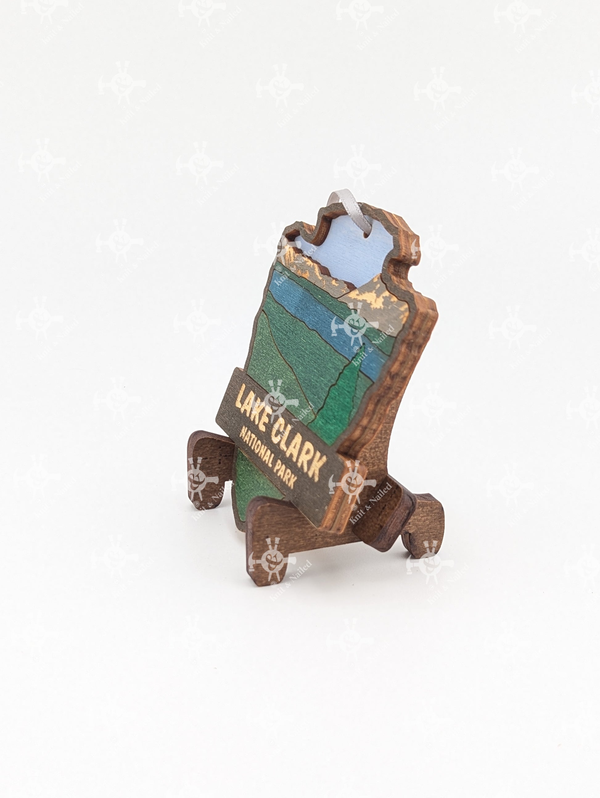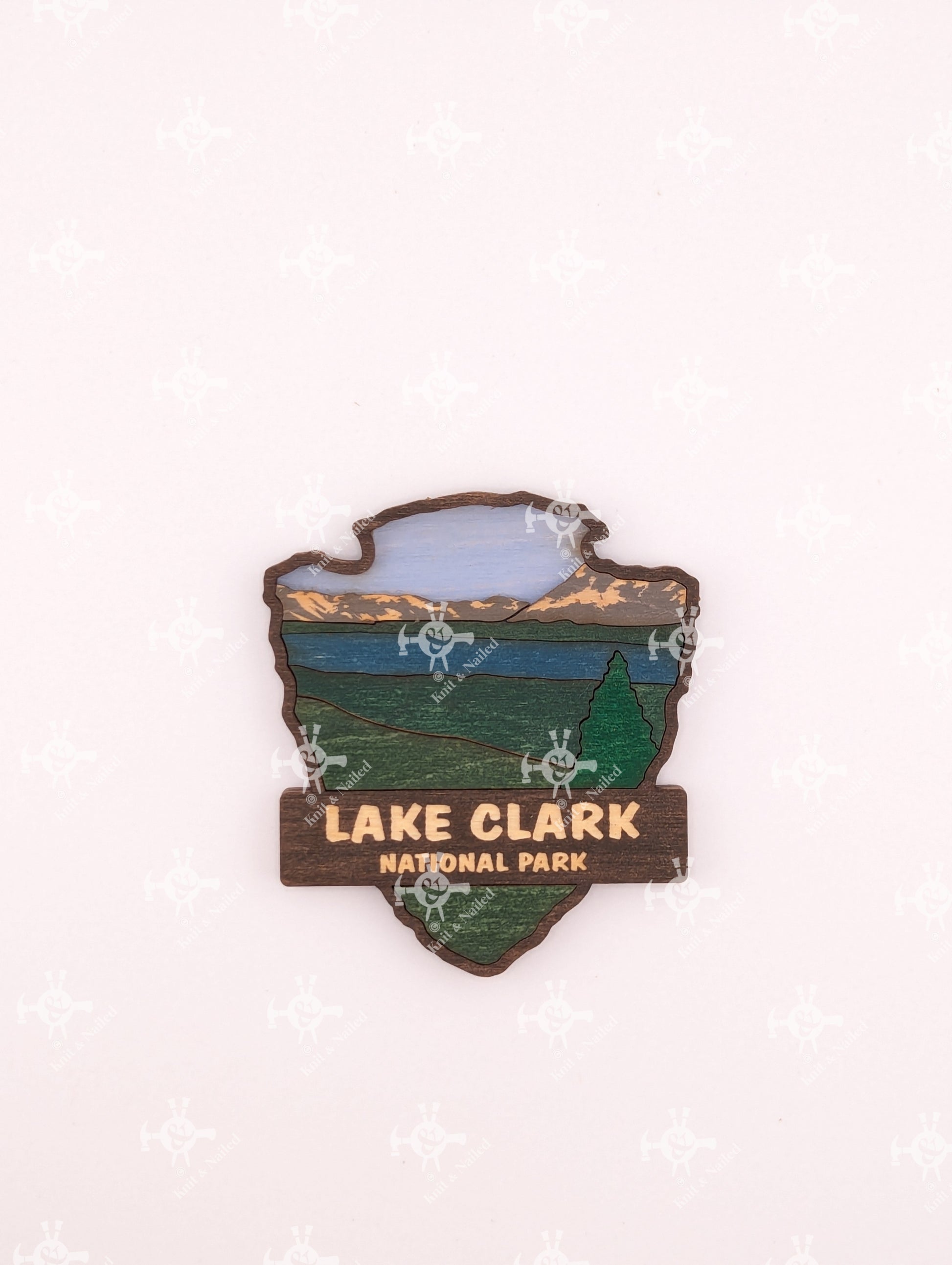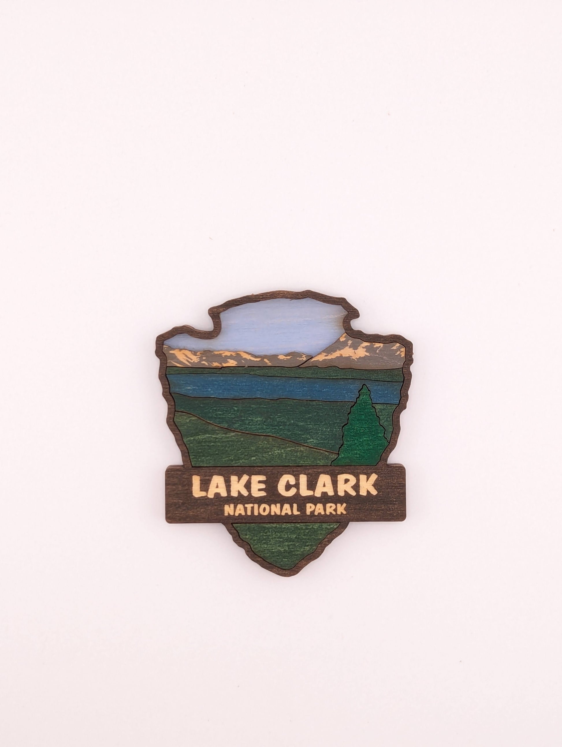 Celebrate your love for the great outdoors with this handcrafted wooden magnet or ornament. Inspired by the classic National Park Arrowhead, its layered design highlights the beauty of nature and brings a touch of the wilderness into your home. Whether displayed on your fridge or hung as décor, it makes a perfect keepsake, gift, or addition to your National Park collection. Each piece is laser-cut and hand-finished, making each item a one-of-a-kind piece of art. Created in our home. From our family to yours. Dimensions: 3.5" tall x 3" wide.