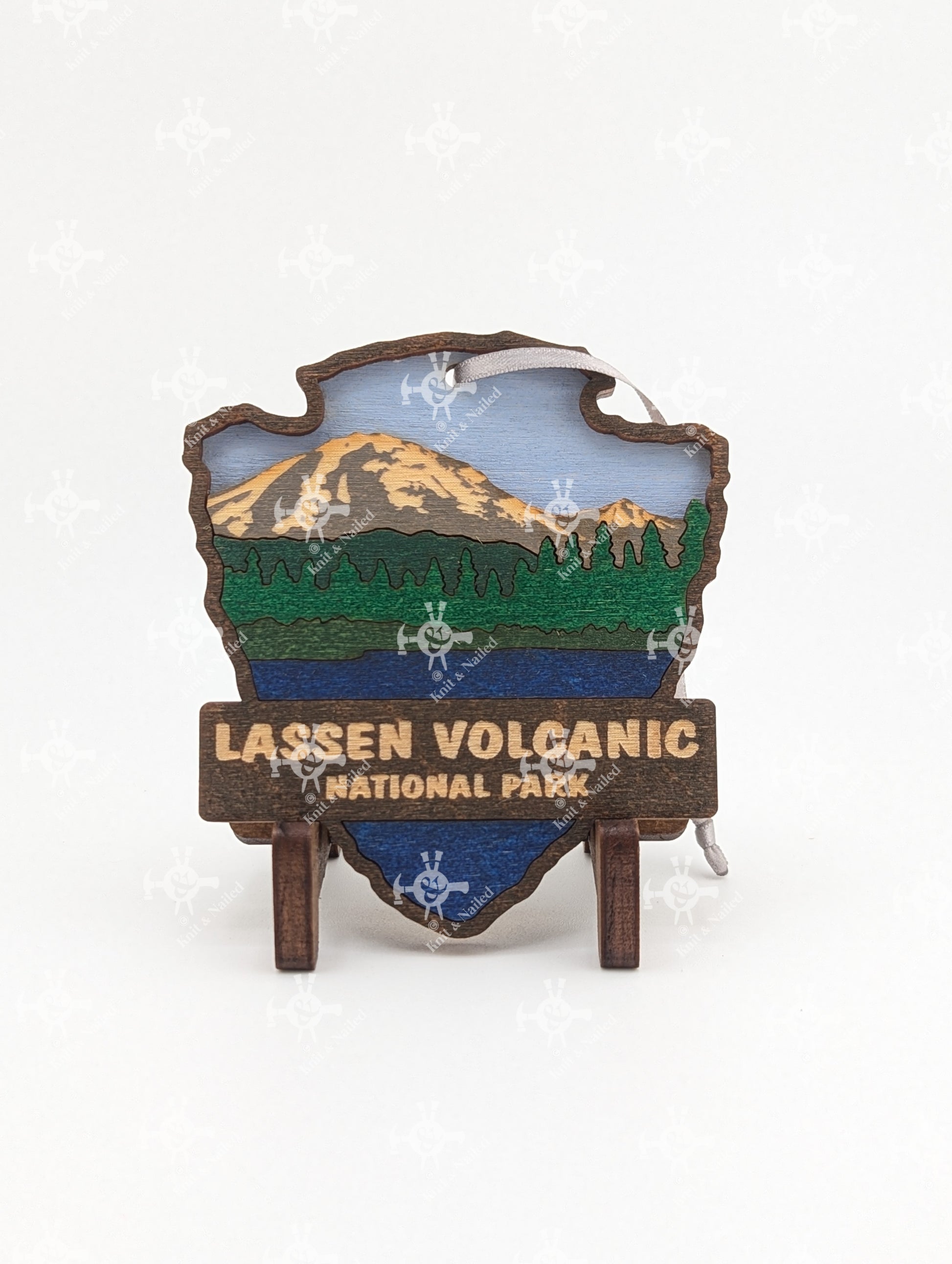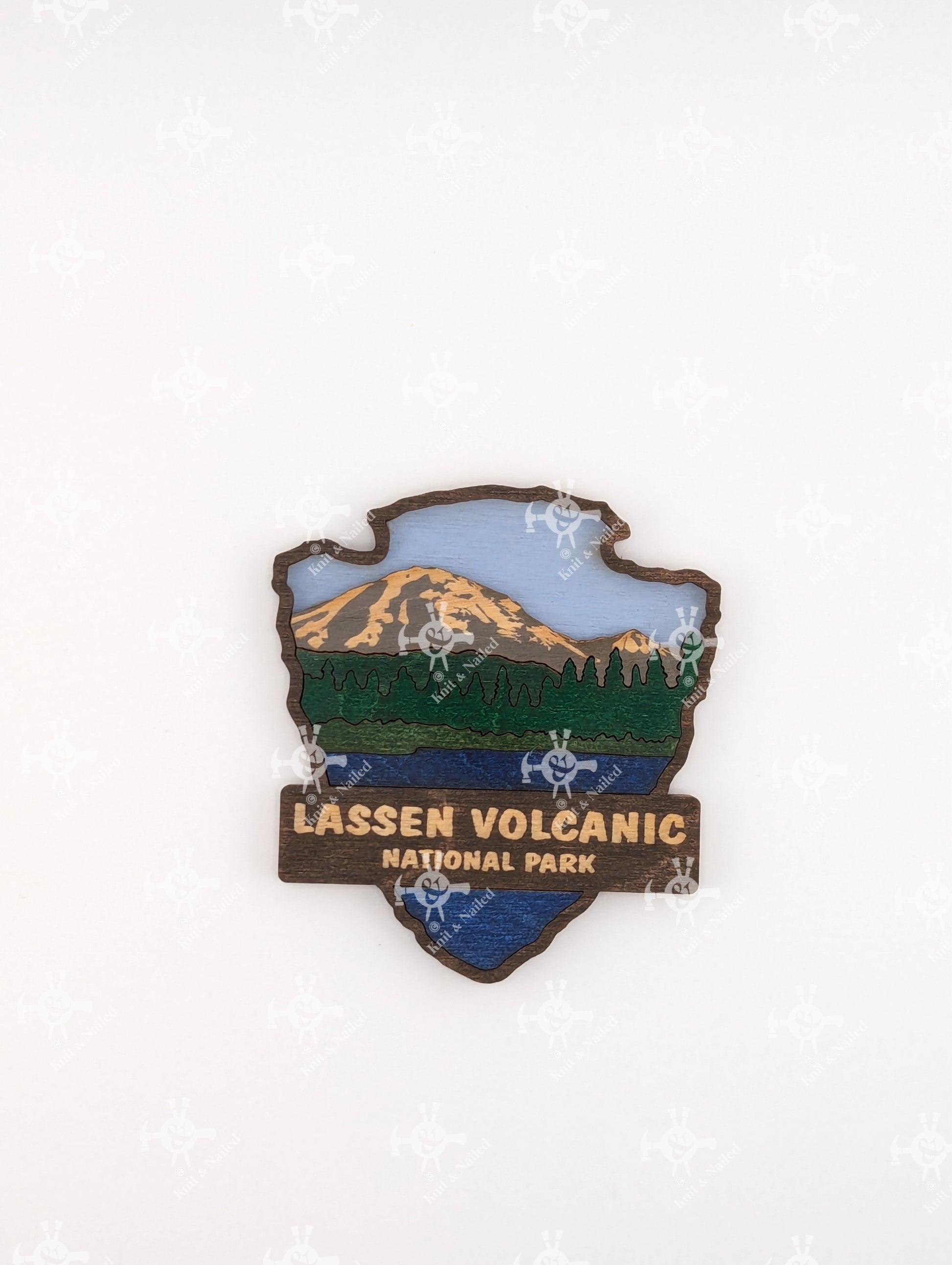 Celebrate your love for the great outdoors with this handcrafted wooden magnet or ornament. Inspired by the classic National Park Arrowhead, its layered design highlights the beauty of nature and brings a touch of the wilderness into your home. Whether displayed on your fridge or hung as décor, it makes a perfect keepsake, gift, or addition to your National Park collection. Each piece is laser-cut and hand-finished, making each item a one-of-a-kind piece of art. Created in our home. From our family to yours. Dimensions: 3.5" tall x 3" wide.