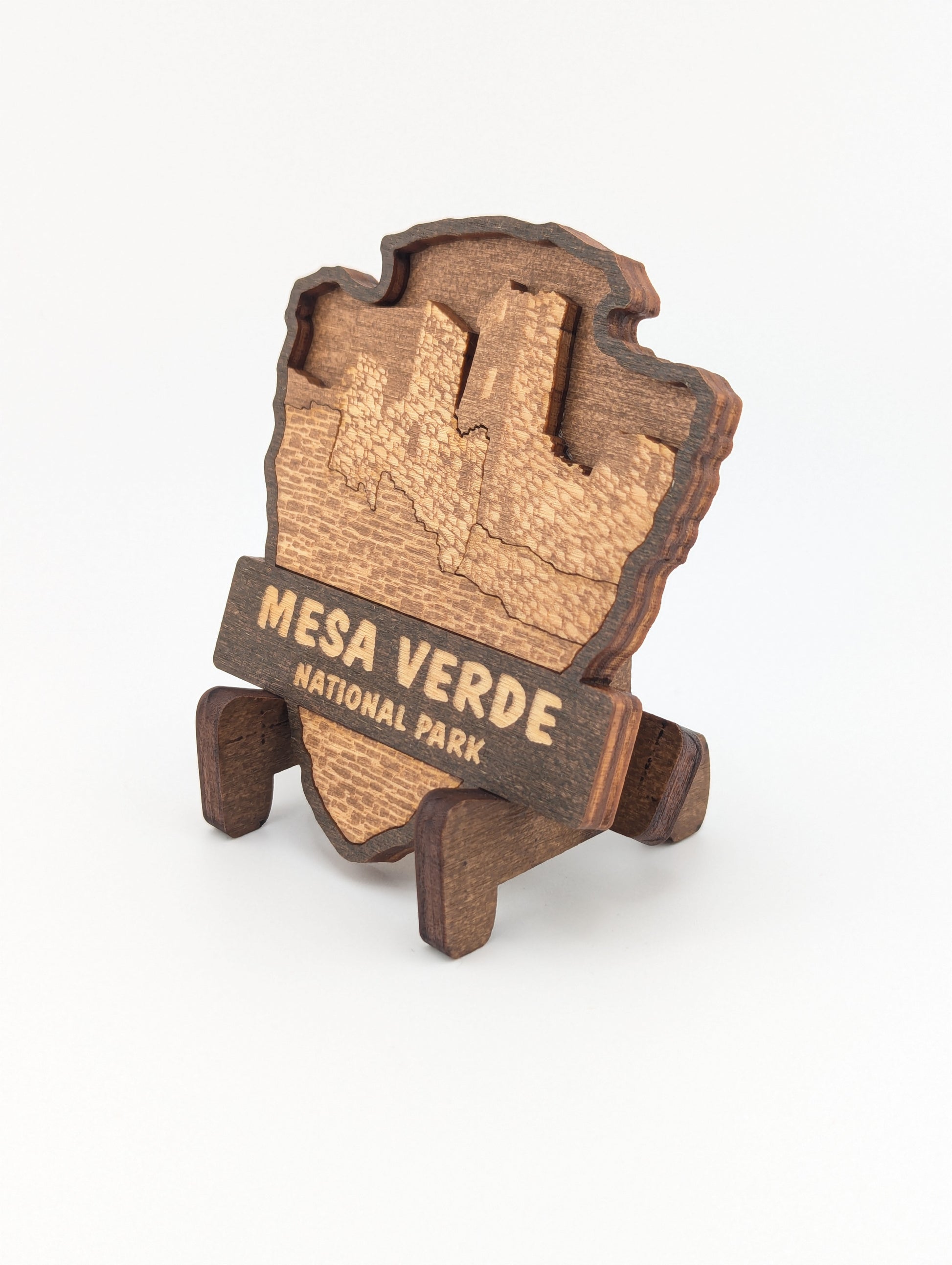 Celebrate your love for the great outdoors with this handcrafted wooden magnet or ornament. Inspired by the classic National Park Arrowhead, its layered design highlights the beauty of nature and brings a touch of the wilderness into your home. Whether displayed on your fridge or hung as décor, it makes a perfect keepsake, gift, or addition to your National Park collection. Each piece is laser-cut and hand-finished, making each item a one of a kind piece of art. Created in our home. From our family to yours. Dimensions: 3.5" tall x 3" wide.