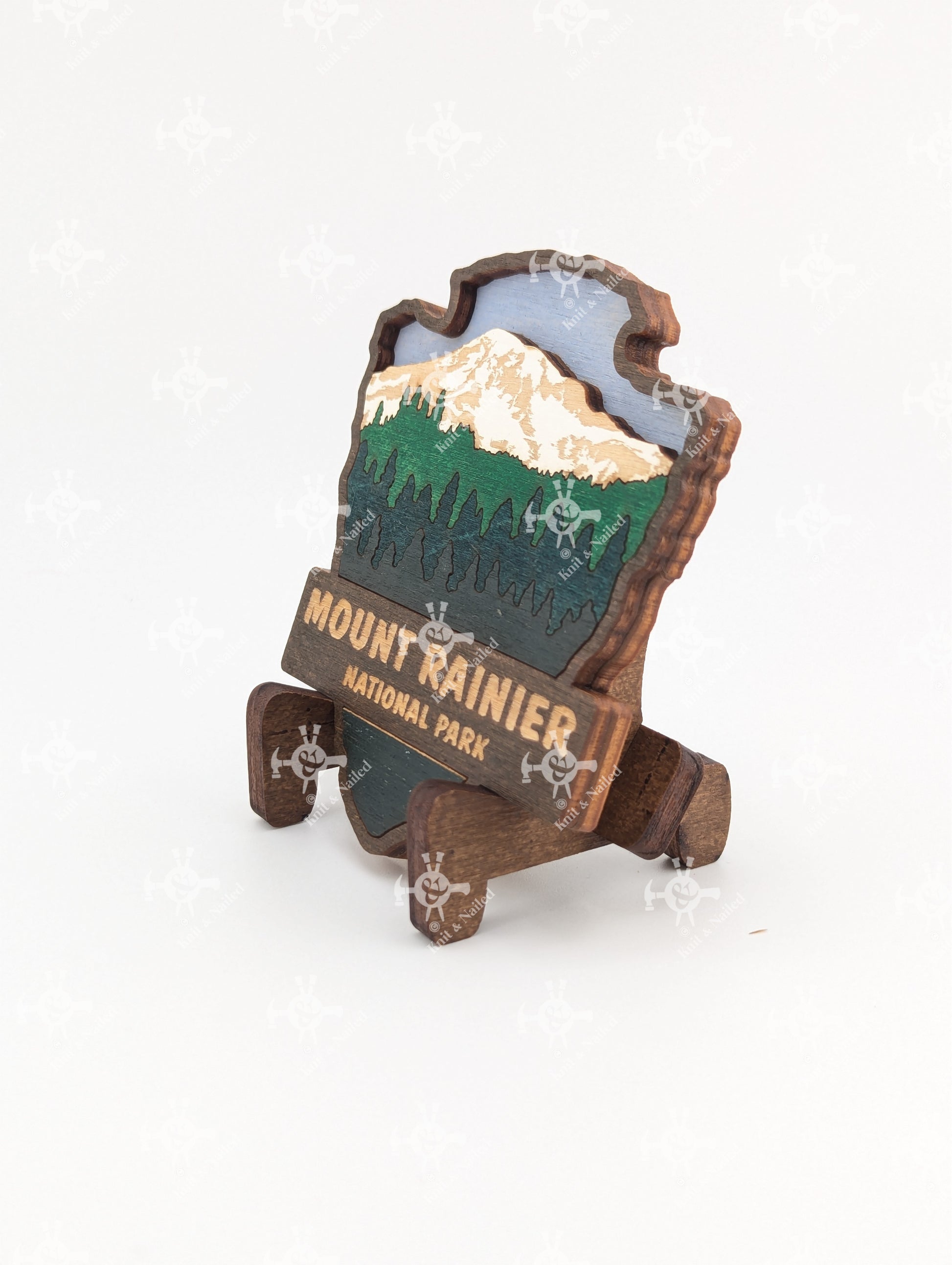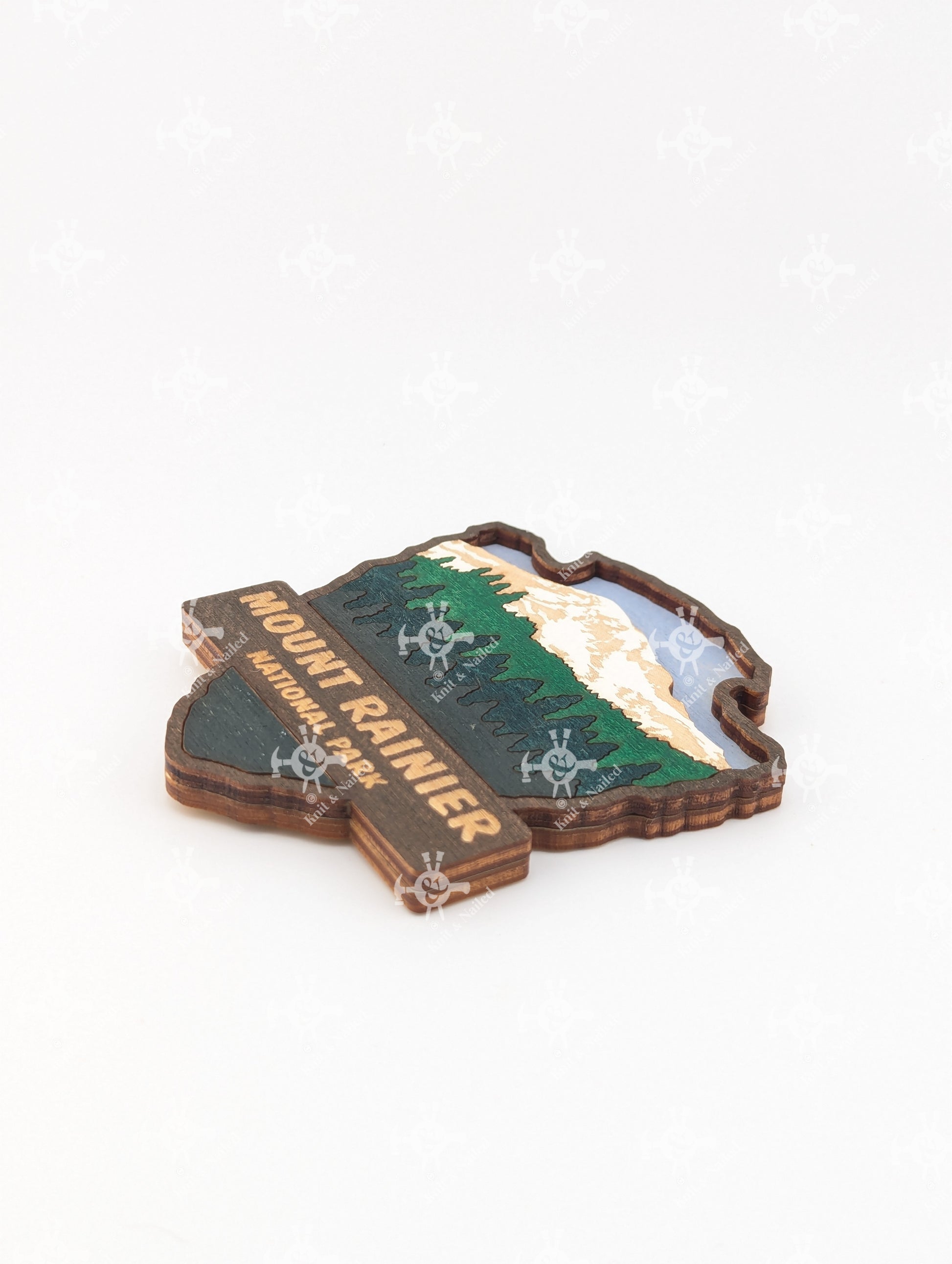 Celebrate your love for the great outdoors with this handcrafted wooden magnet or ornament. Inspired by the classic National Park Arrowhead, its layered design highlights the beauty of nature and brings a touch of the wilderness into your home. Whether displayed on your fridge or hung as décor, it makes a perfect keepsake, gift, or addition to your National Park collection. Each piece is laser-cut and hand-finished, making each item a one-of-a-kind piece of art. Created in our home. From our family to yours. Dimensions: 3.5" tall x 3" wide.