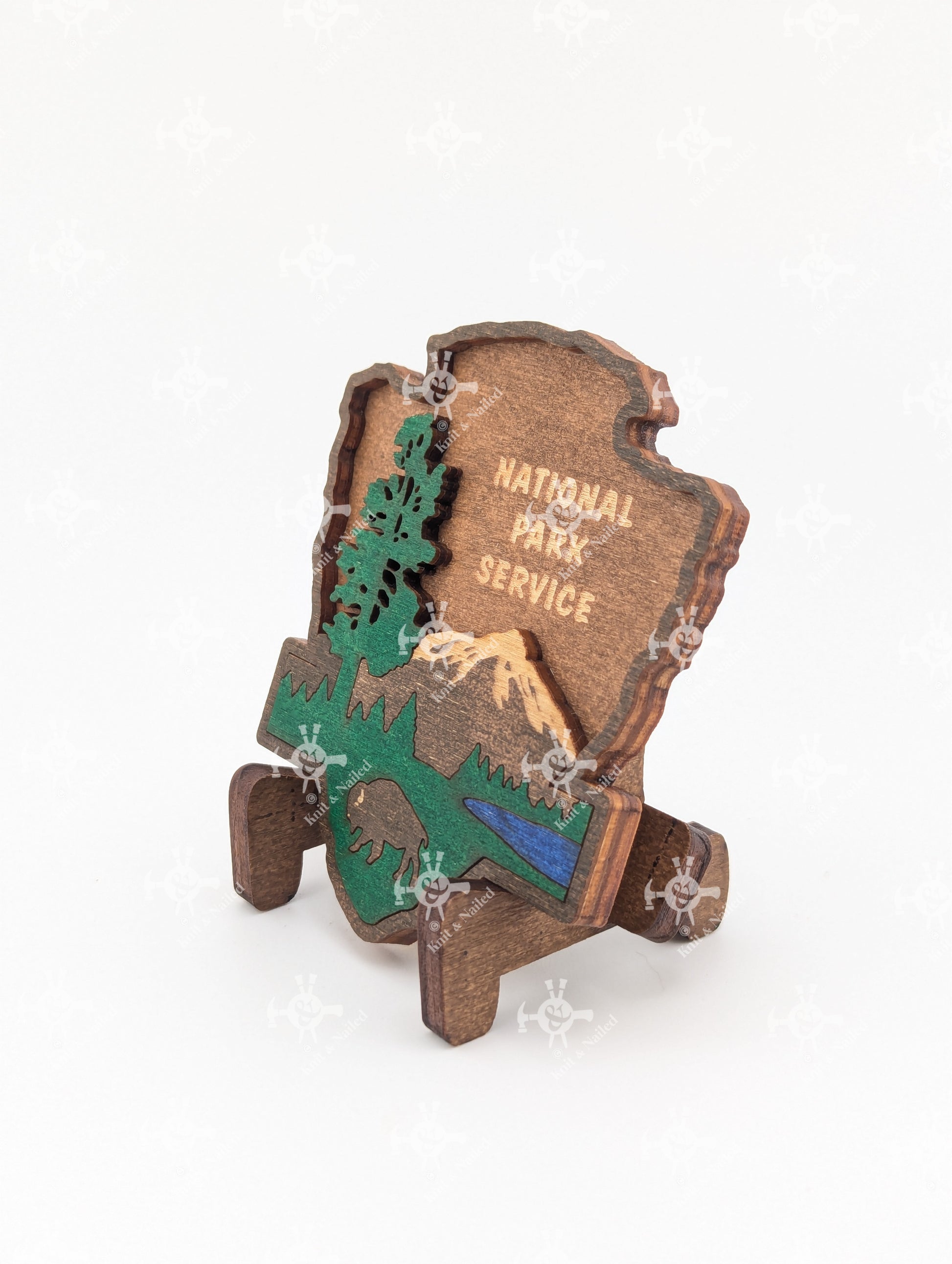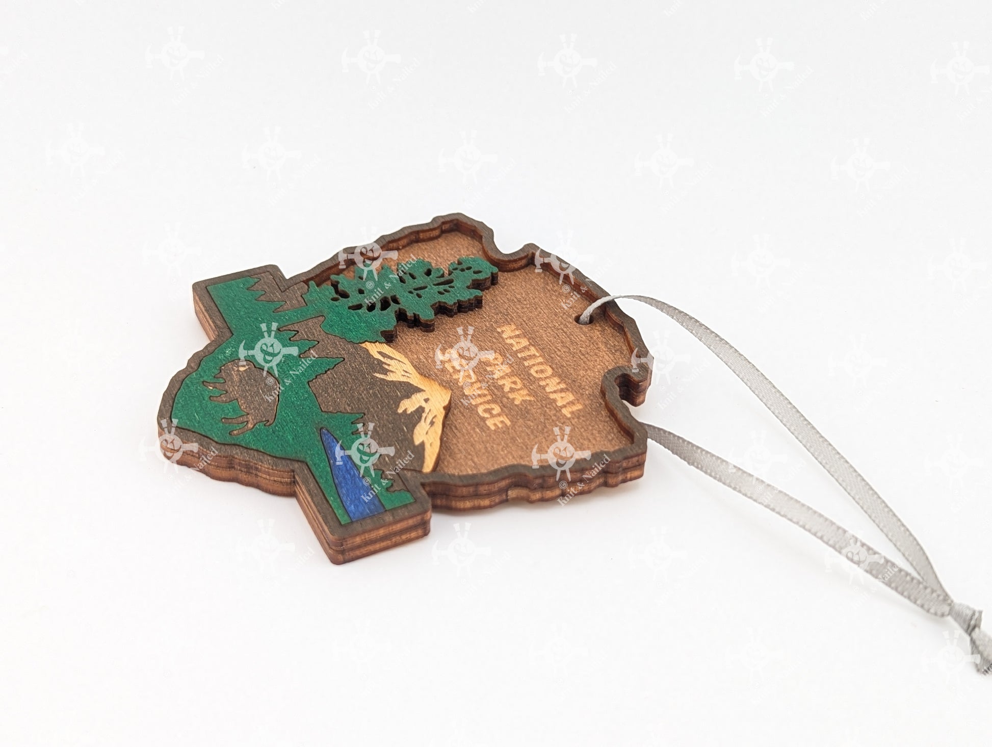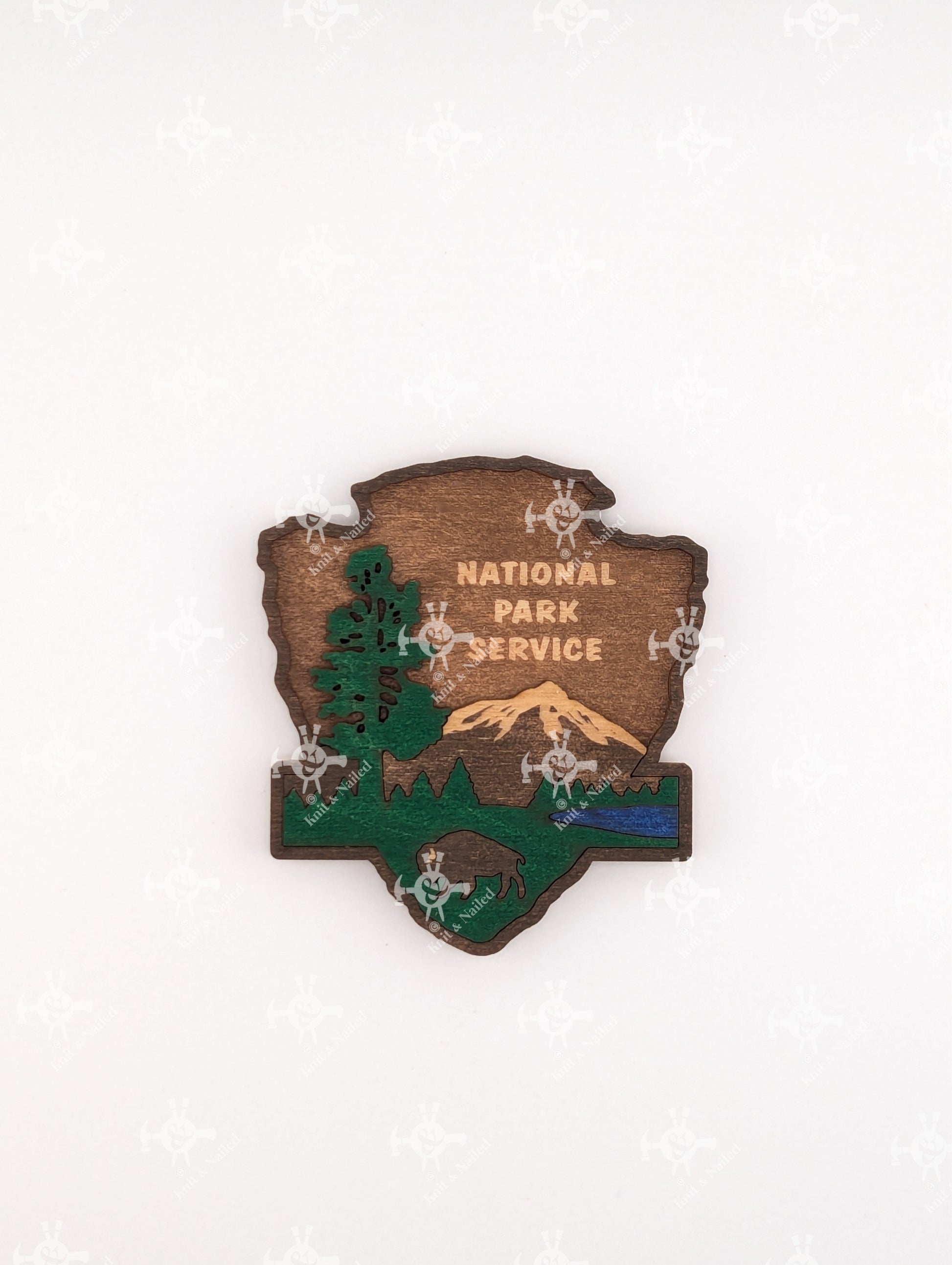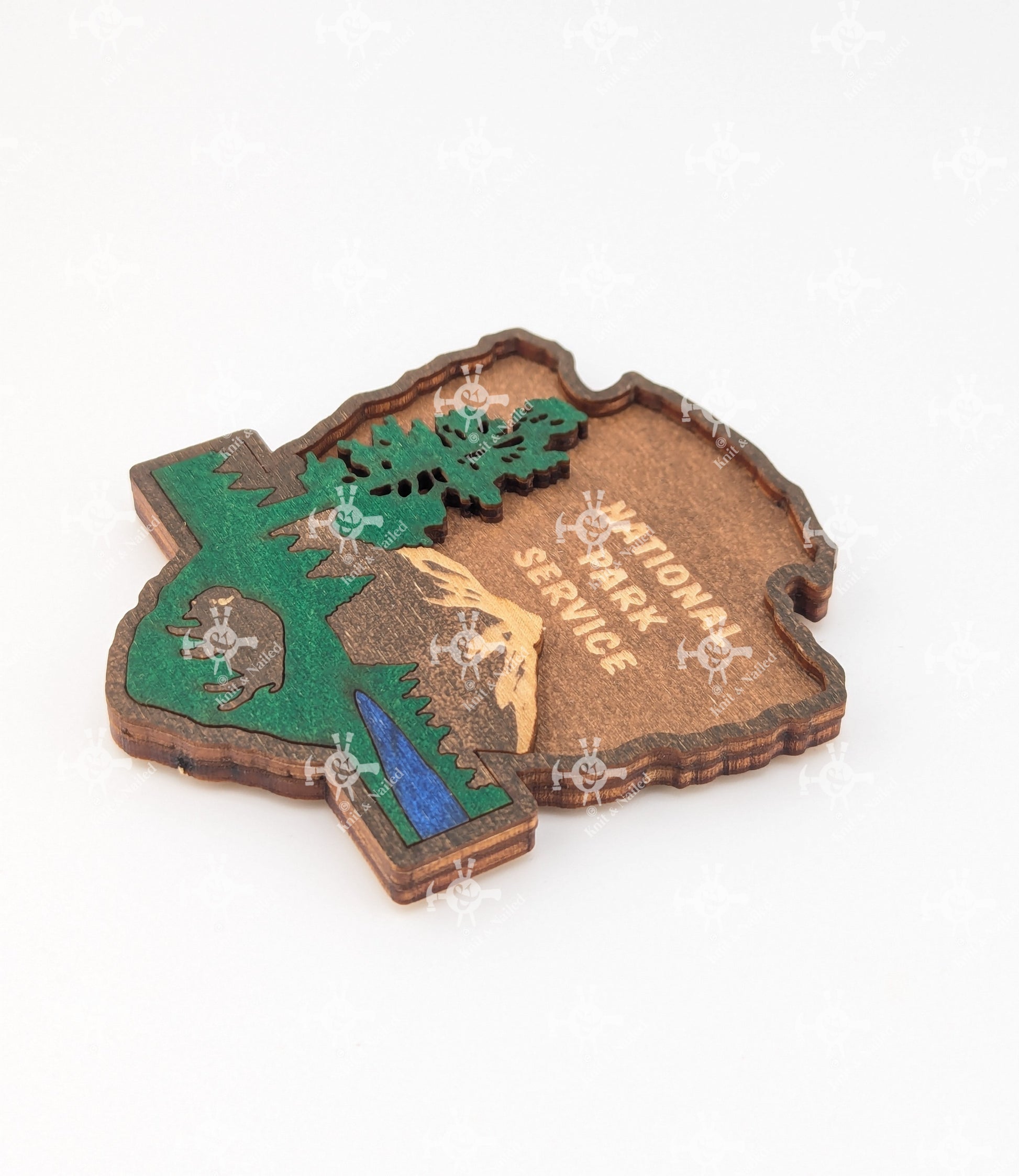 Celebrate your love for the great outdoors with this handcrafted wooden magnet or ornament. Inspired by the classic National Park Arrowhead, its layered design highlights the beauty of nature and brings a touch of the wilderness into your home. Whether displayed on your fridge or hung as décor, it makes a perfect keepsake, gift, or addition to your National Park collection. Each piece is laser-cut and hand-finished, making each item a one-of-a-kind piece of art. Created in our home. From our family to yours. Dimensions: 3.5" tall x 3" wide.