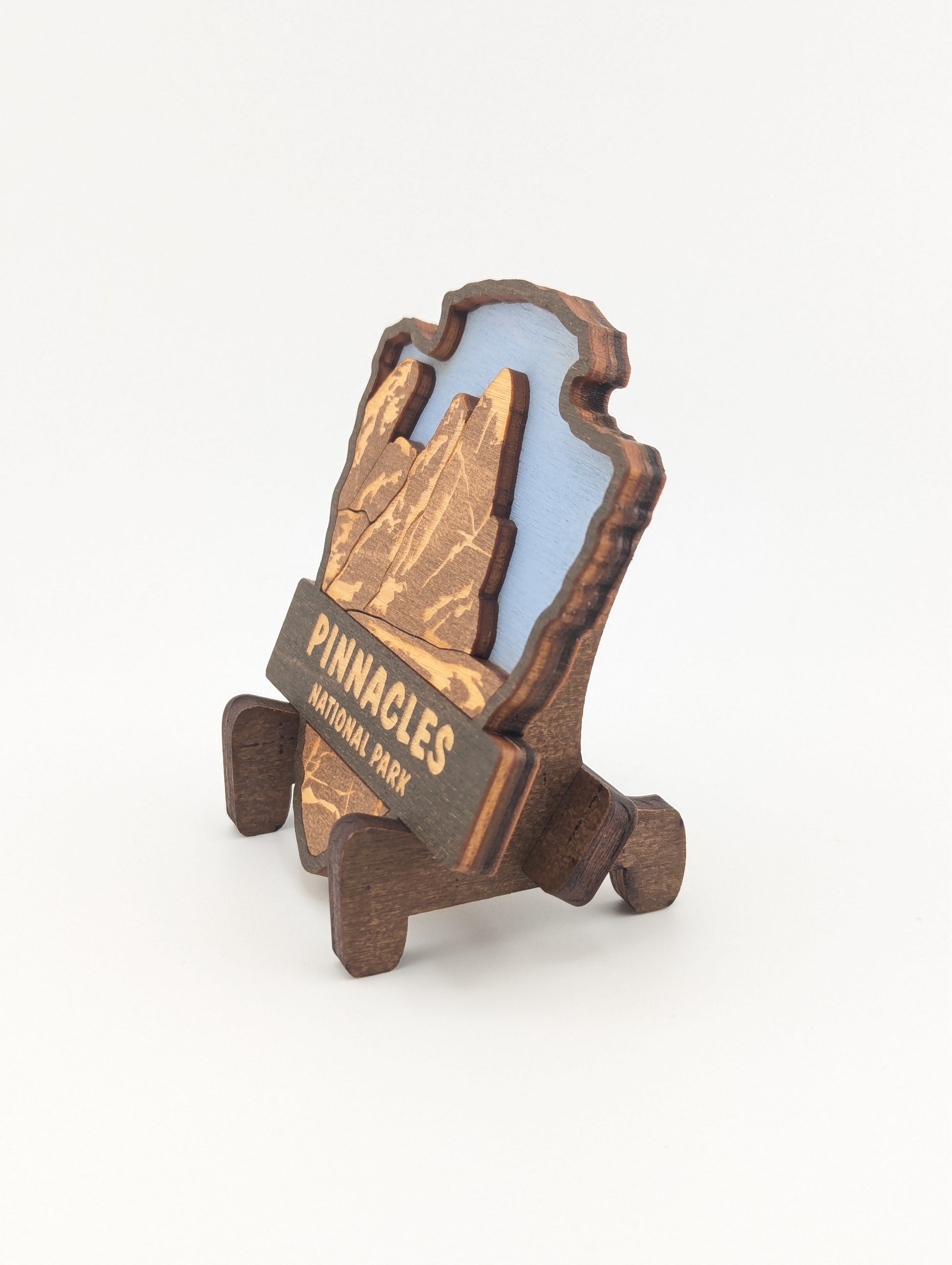 Celebrate your love for the great outdoors with this handcrafted wooden magnet or ornament. Inspired by the classic National Park Arrowhead, its layered design highlights the beauty of nature and brings a touch of the wilderness into your home. Whether displayed on your fridge or hung as décor, it makes a perfect keepsake, gift, or addition to your National Park collection. Each piece is laser-cut and hand-finished, making each item a one-of-a-kind piece of art. Created in our home. From our family to yours. Dimensions: 3.5" tall x 3" wide.