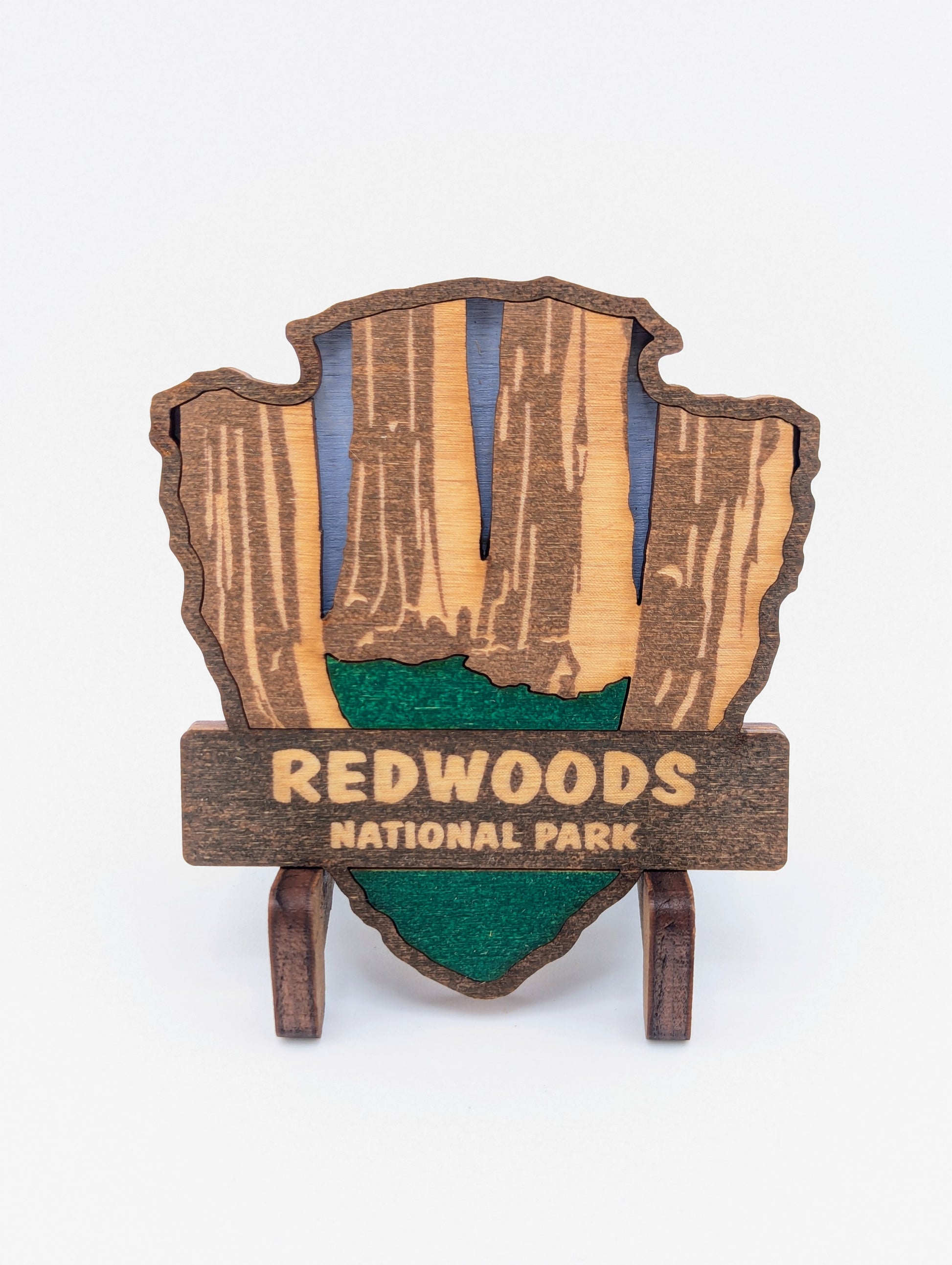 Celebrate your love for the great outdoors with this handcrafted wooden magnet or ornament. Inspired by the classic National Park Arrowhead, its layered design highlights the beauty of nature and brings a touch of the wilderness into your home. Whether displayed on your fridge or hung as décor, it makes a perfect keepsake, gift, or addition to your National Park collection. Each piece is laser-cut and hand-finished, making each item a one-of-a-kind piece of art. Created in our home. From our family to yours. Dimensions: 3.5" tall x 3" wide.
