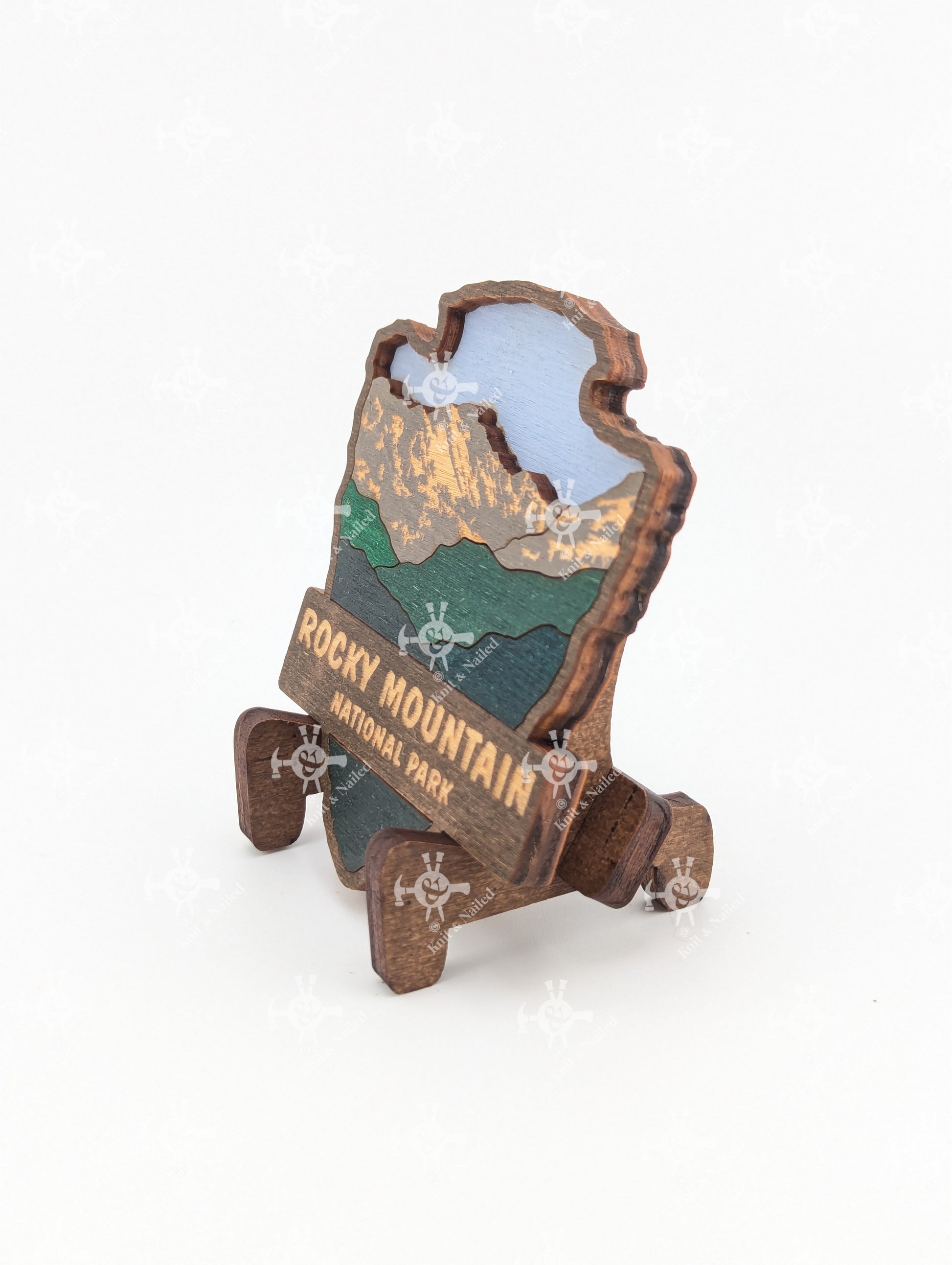 Celebrate your love for the great outdoors with this handcrafted wooden magnet or ornament. Inspired by the classic National Park Arrowhead, its layered design highlights the beauty of nature and brings a touch of the wilderness into your home. Whether displayed on your fridge or hung as décor, it makes a perfect keepsake, gift, or addition to your National Park collection. Each piece is laser-cut and hand-finished, making each item a one-of-a-kind piece of art. Created in our home. From our family to yours. Dimensions: 3.5" tall x 3" wide.