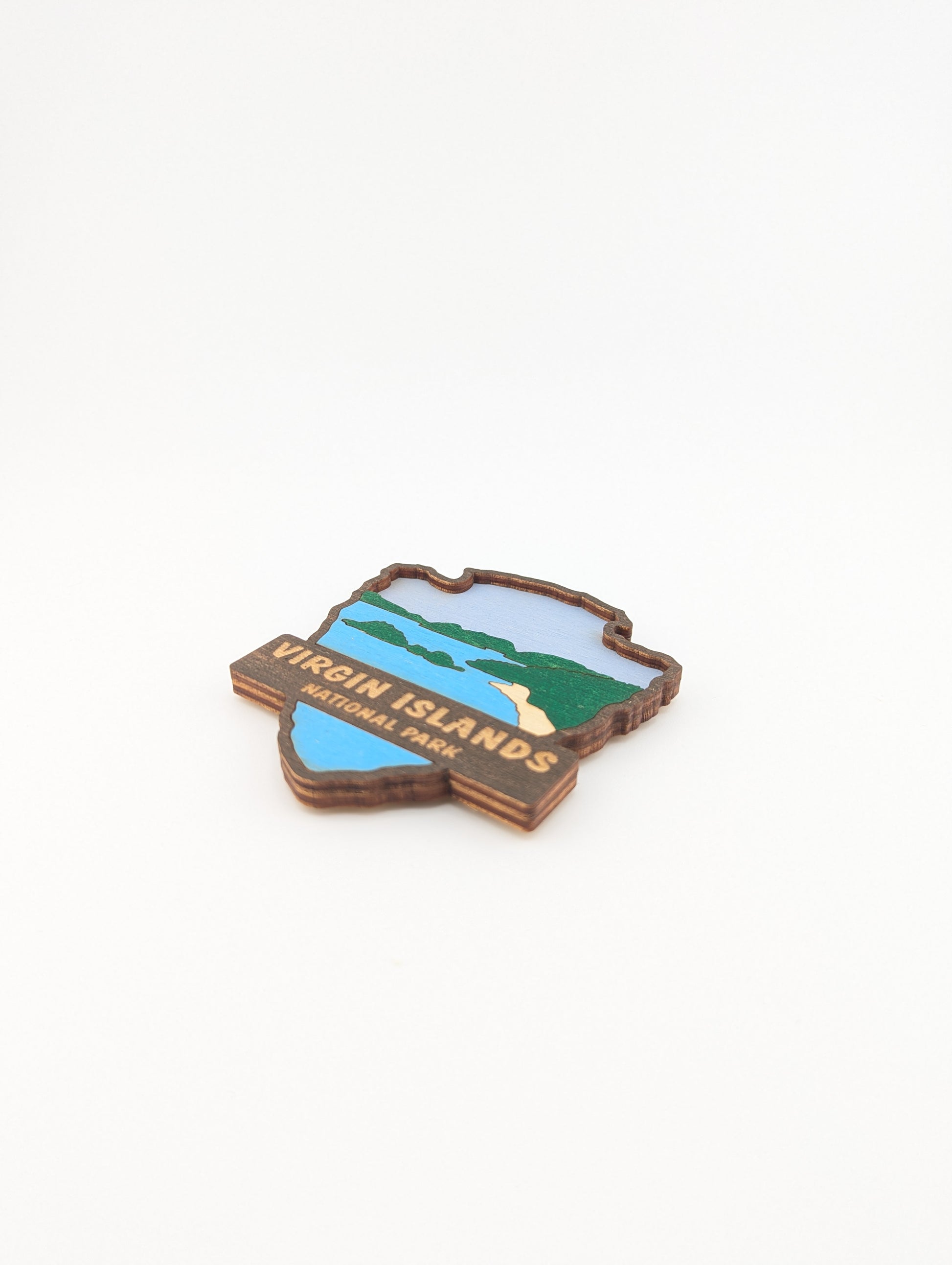 Celebrate your love for the great outdoors with this handcrafted wooden magnet or ornament. Inspired by the classic National Park Arrowhead, its layered design highlights the beauty of nature and brings a touch of the wilderness into your home. Whether displayed on your fridge or hung as décor, it makes a perfect keepsake, gift, or addition to your National Park collection. Each piece is laser-cut and hand-finished, making each item a one-of-a-kind piece of art. Created in our home. From our family to yours. Dimensions: 3.5" tall x 3" wide.