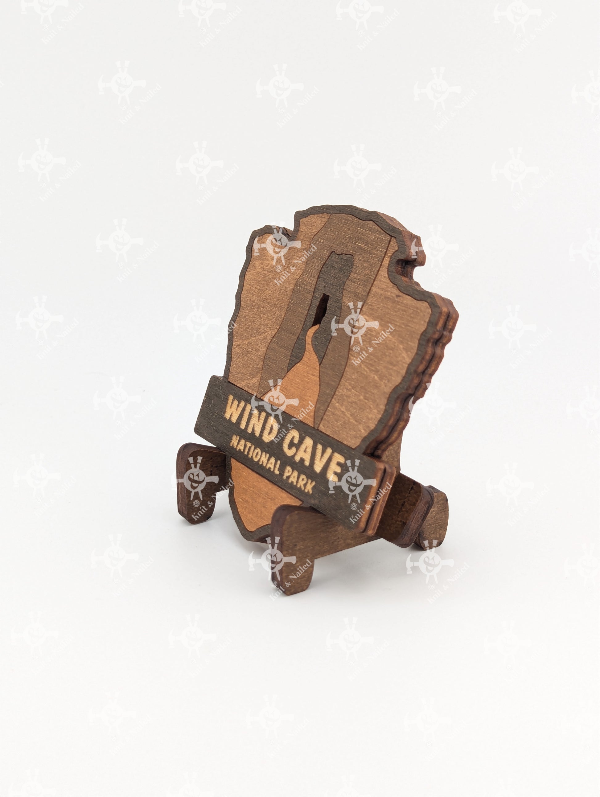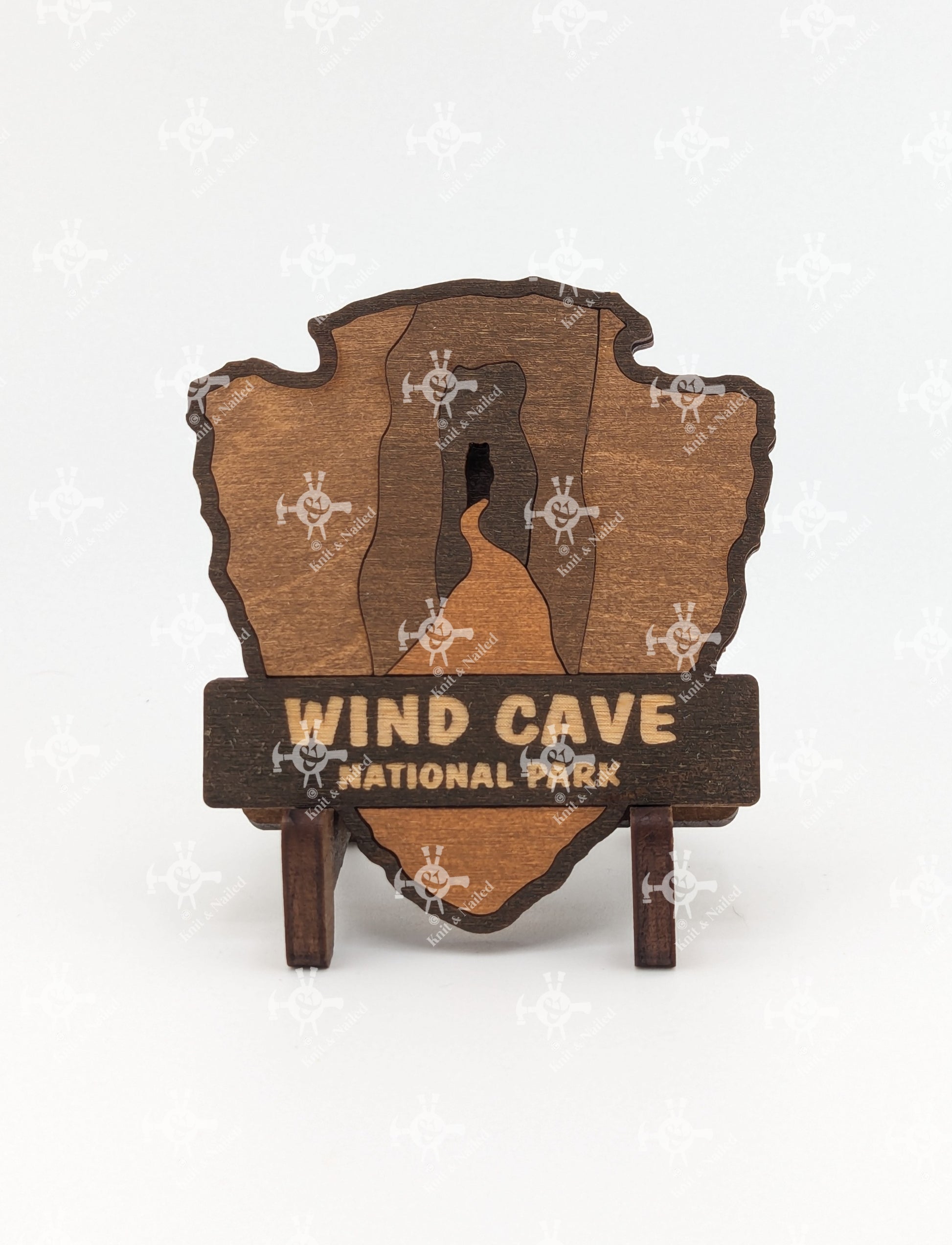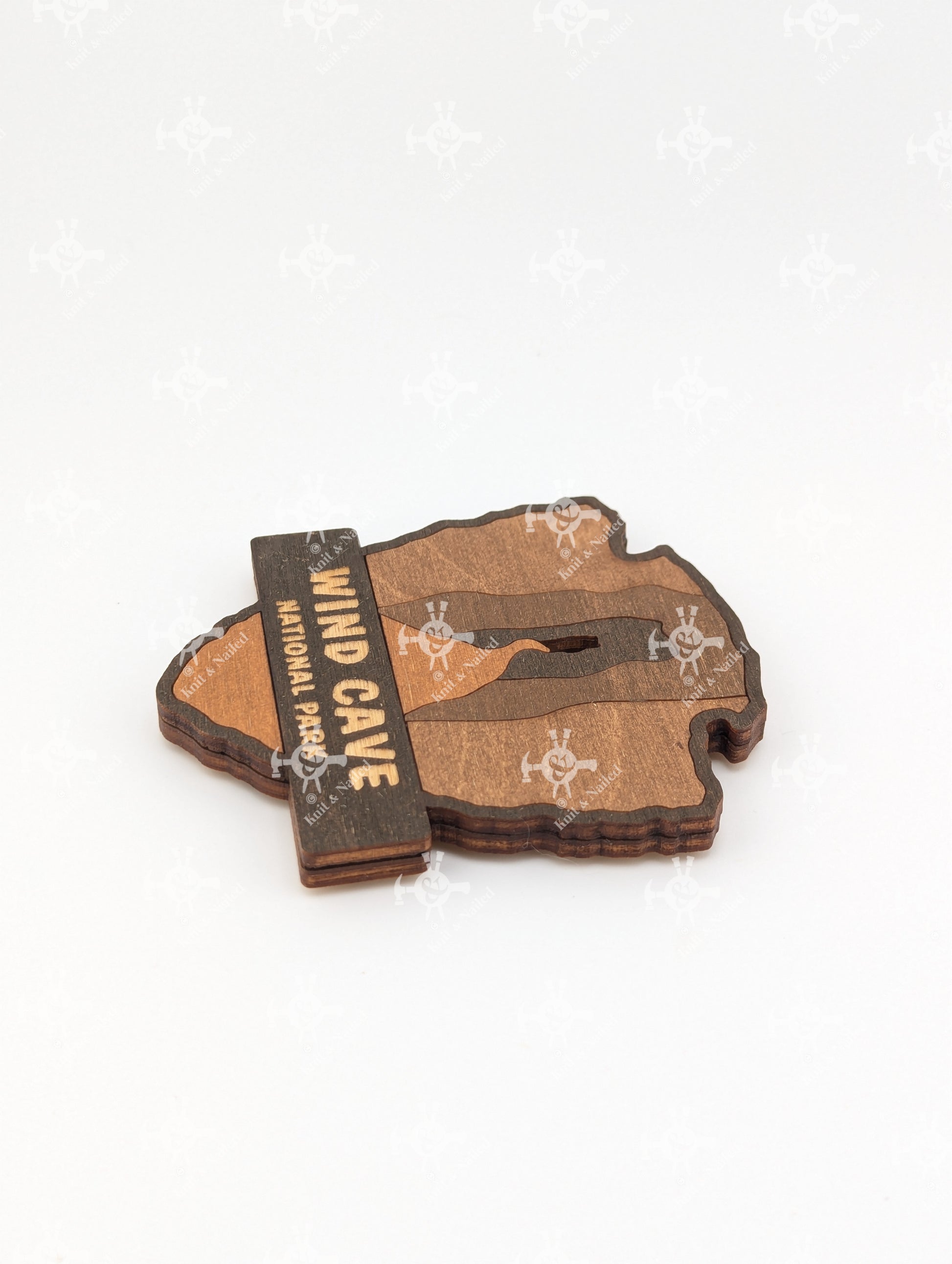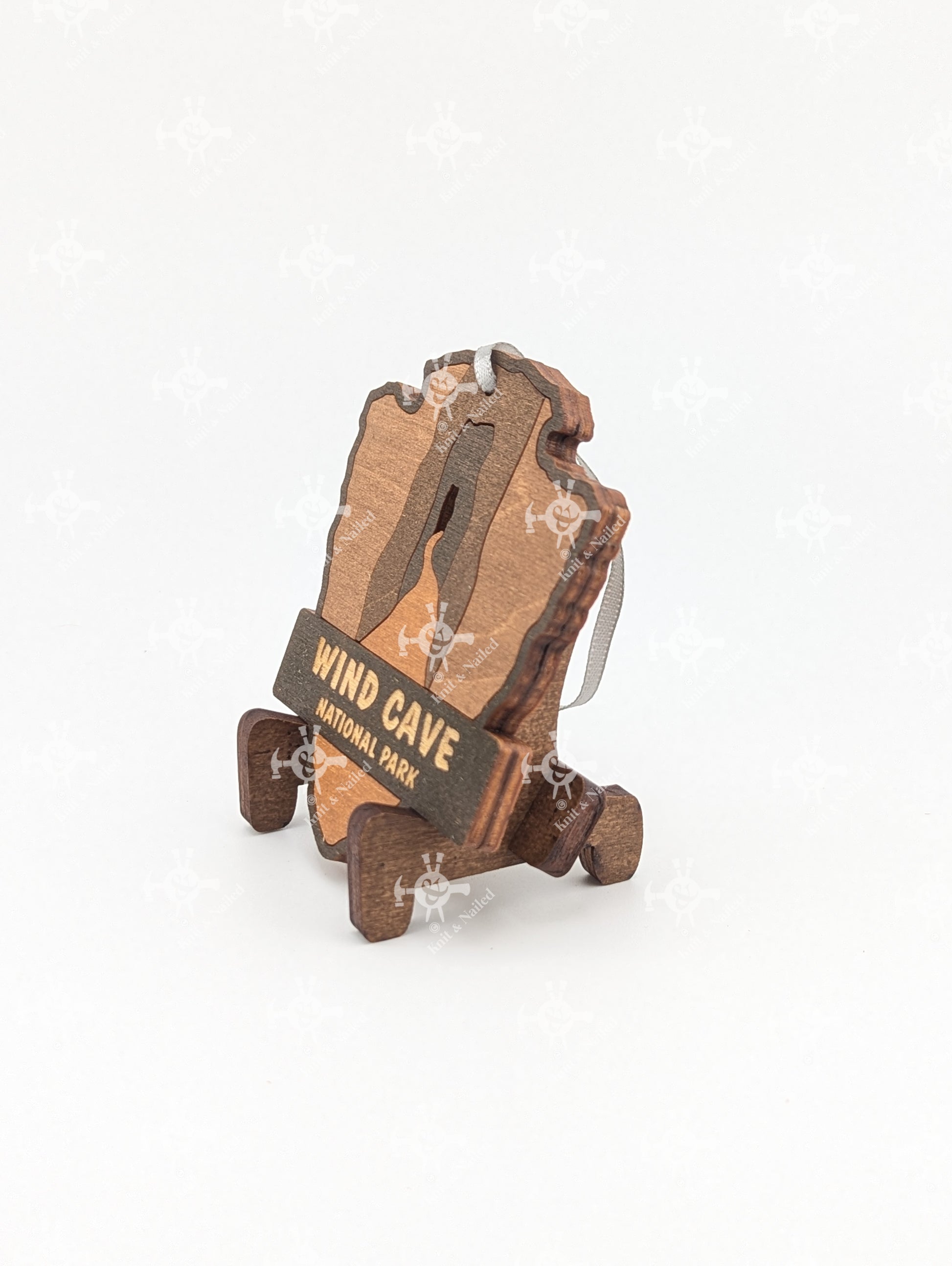 Celebrate your love for the great outdoors with this handcrafted wooden magnet or ornament. Inspired by the classic National Park Arrowhead, its layered design highlights the beauty of nature and brings a touch of the wilderness into your home. Whether displayed on your fridge or hung as décor, it makes a perfect keepsake, gift, or addition to your National Park collection. Each piece is laser-cut and hand-finished, making each item a one-of-a-kind piece of art. Created in our home. From our family to yours. Dimensions: 3.5" tall x 3" wide.