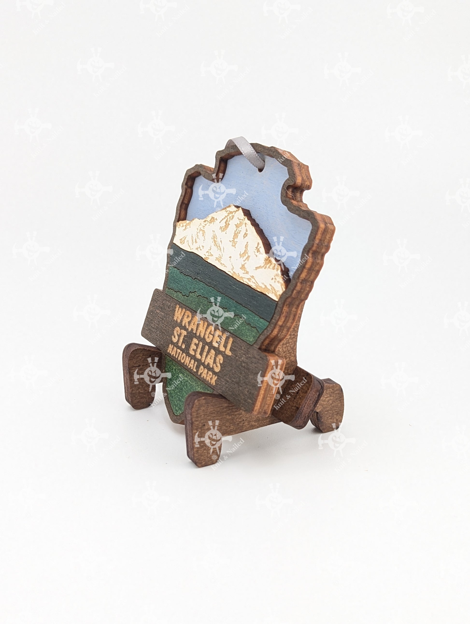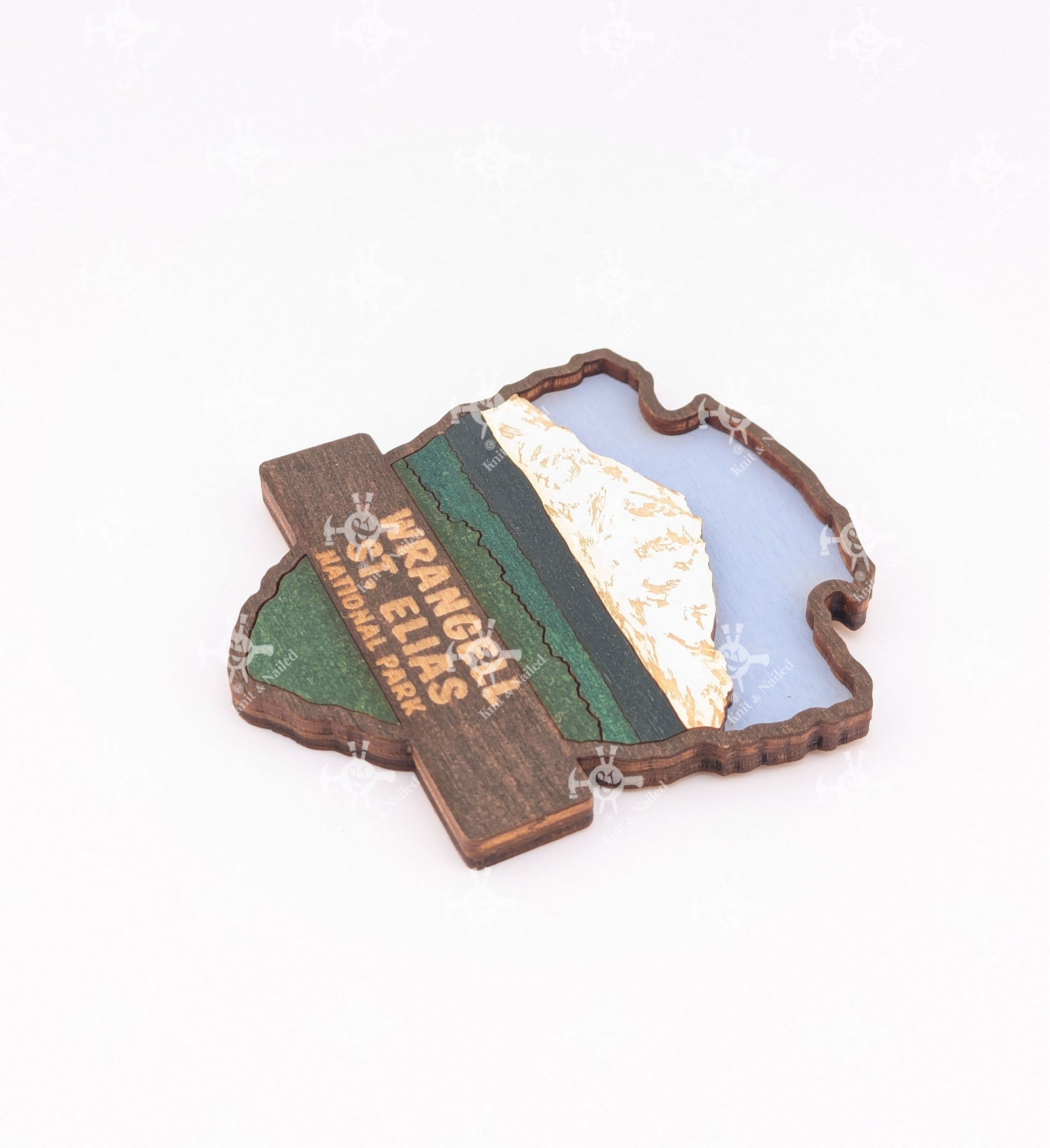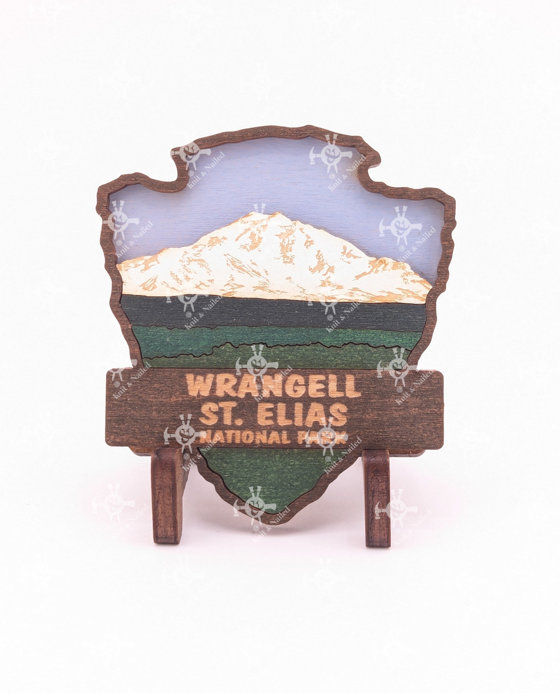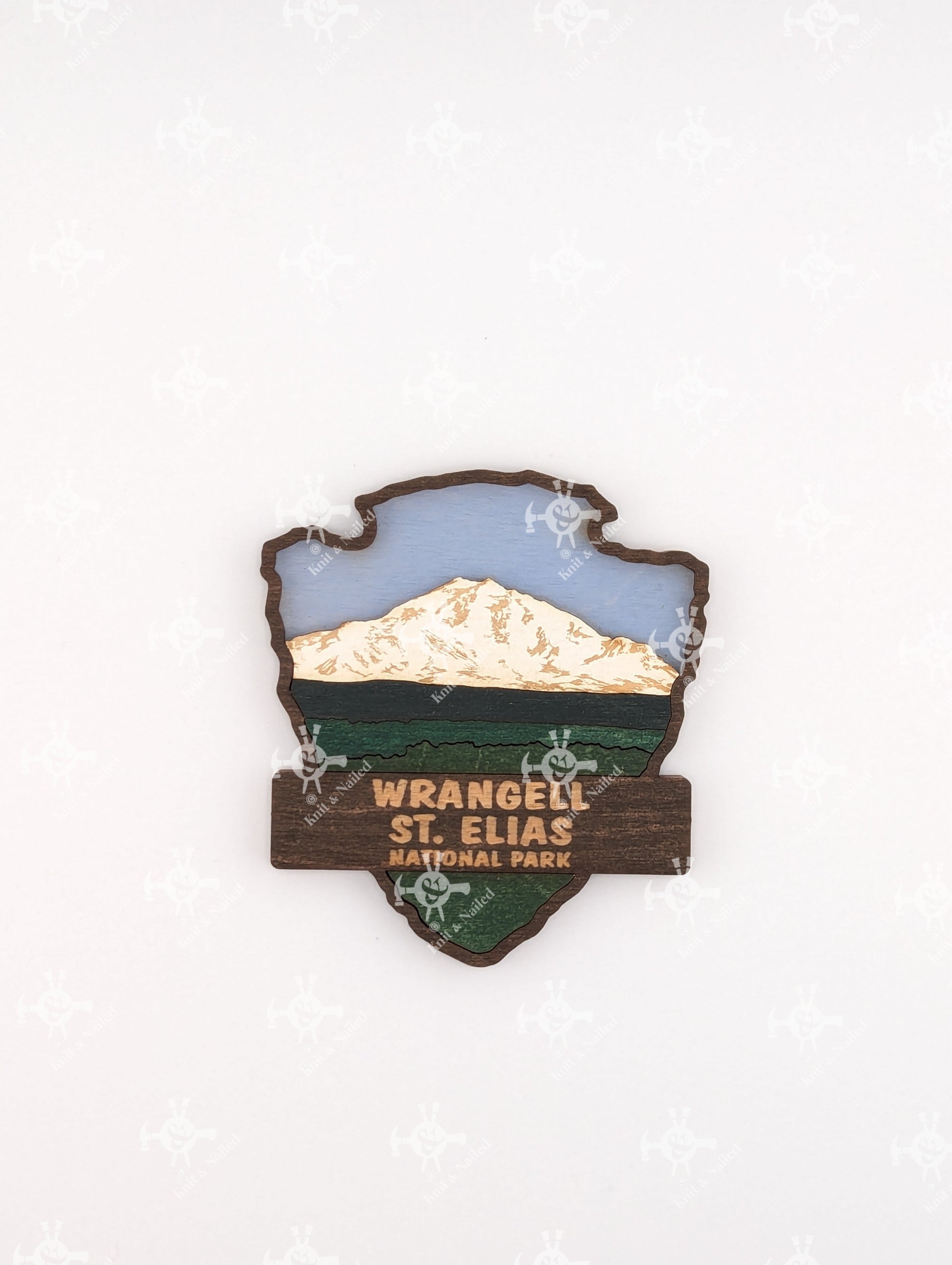 Celebrate your love for the great outdoors with this handcrafted wooden magnet or ornament. Inspired by the classic National Park Arrowhead, its layered design highlights the beauty of nature and brings a touch of the wilderness into your home. Whether displayed on your fridge or hung as décor, it makes a perfect keepsake, gift, or addition to your National Park collection. Each piece is laser-cut and hand-finished, making each item a one-of-a-kind piece of art. Created in our home. From our family to yours. Dimensions: 3.5" tall x 3" wide.