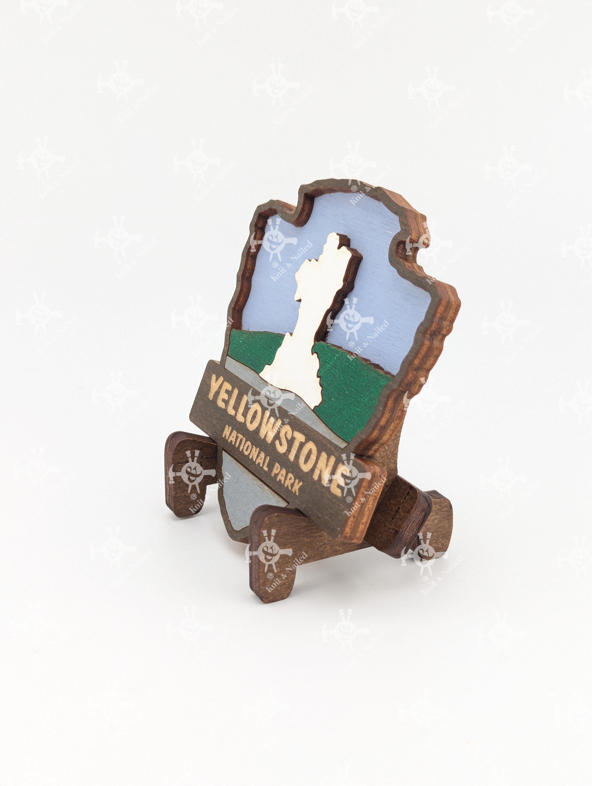 Celebrate your love for the great outdoors with this handcrafted wooden magnet or ornament. Inspired by the classic National Park Arrowhead, its layered design highlights the beauty of nature and brings a touch of the wilderness into your home. Whether displayed on your fridge or hung as décor, it makes a perfect keepsake, gift, or addition to your National Park collection. Each piece is laser-cut and hand-finished, making each item a one of a kind piece of art. Created in our home. From our family to yours. Dimensions: 3.5" tall x 3" wide.