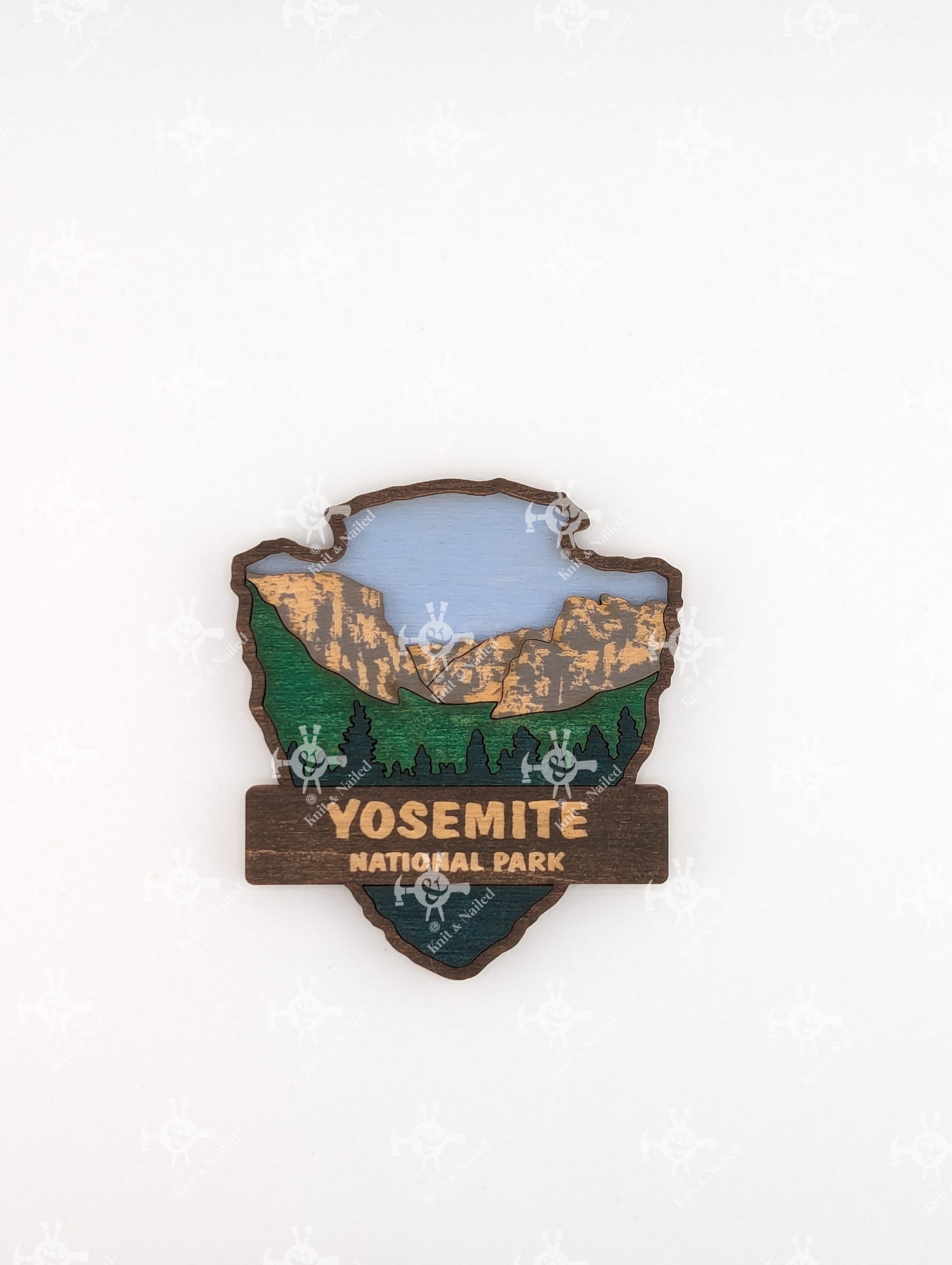 Celebrate your love for the great outdoors with this handcrafted wooden magnet or ornament. Inspired by the classic National Park Arrowhead, its layered design highlights the beauty of nature and brings a touch of the wilderness into your home. Whether displayed on your fridge or hung as décor, it makes a perfect keepsake, gift, or addition to your National Park collection. Each piece is laser-cut and hand-finished, making each item a one-of-a-kind piece of art. Created in our home. From our family to yours. Dimensions: 3.5" tall x 3" wide.