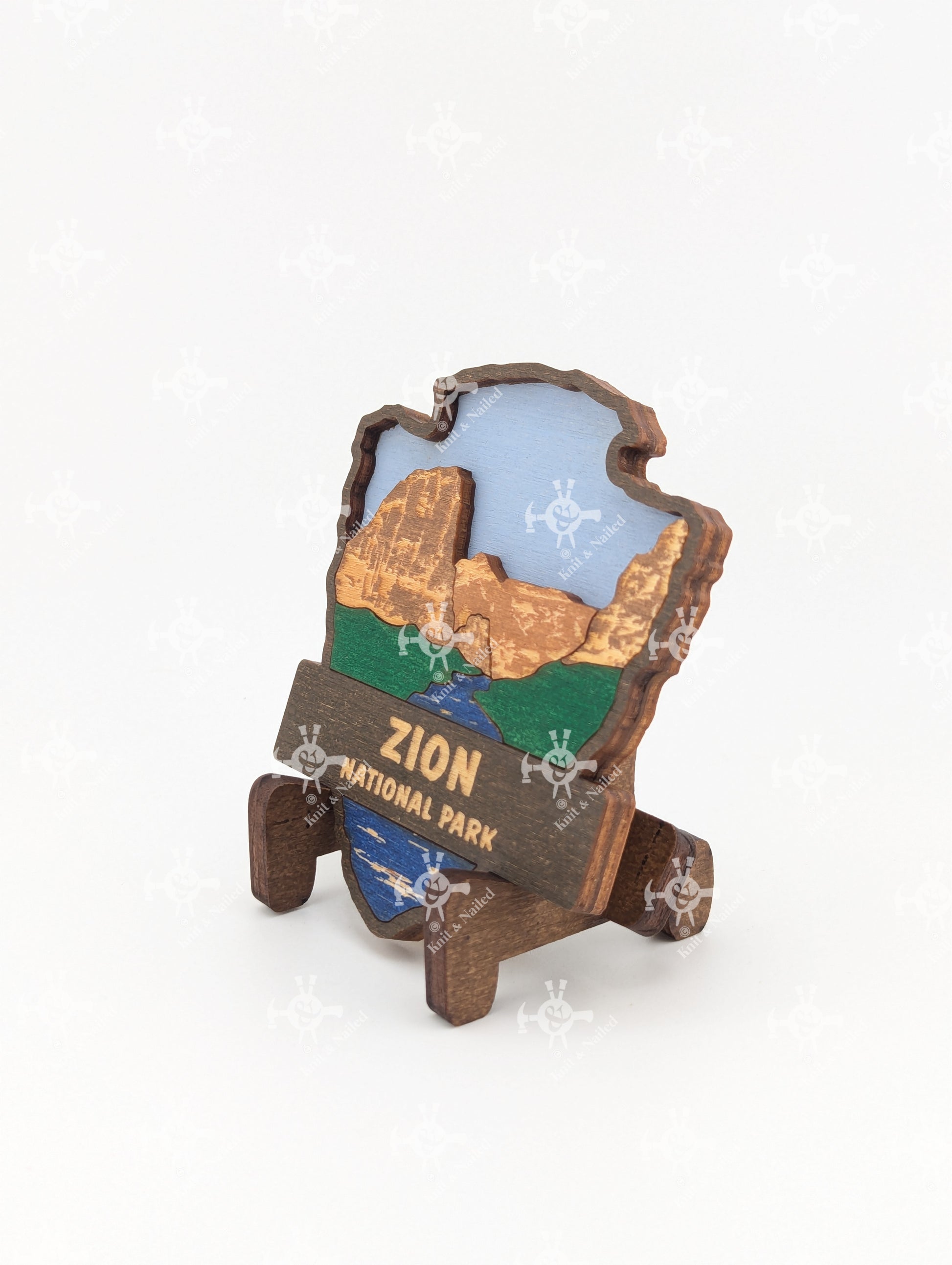 Celebrate your love for the great outdoors with this handcrafted wooden magnet or ornament. Inspired by the classic National Park Arrowhead, its layered design highlights the beauty of nature and brings a touch of the wilderness into your home. Whether displayed on your fridge or hung as décor, it makes a perfect keepsake, gift, or addition to your National Park collection. Each piece is laser-cut and hand-finished, making each item a one of a kind piece of art. Created in our home. From our family to yours. Dimensions: 3.5" tall x 3" wide.